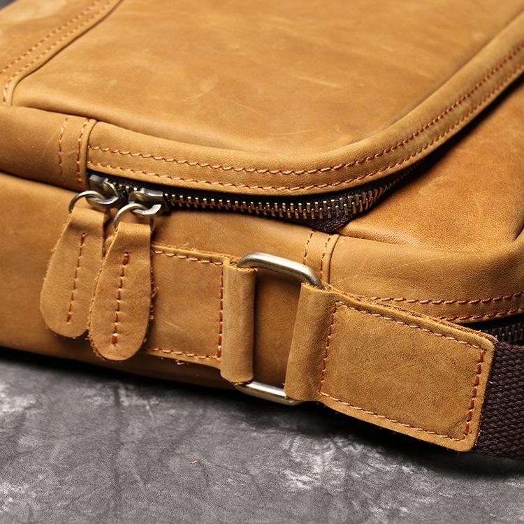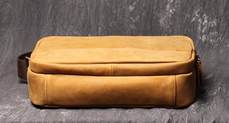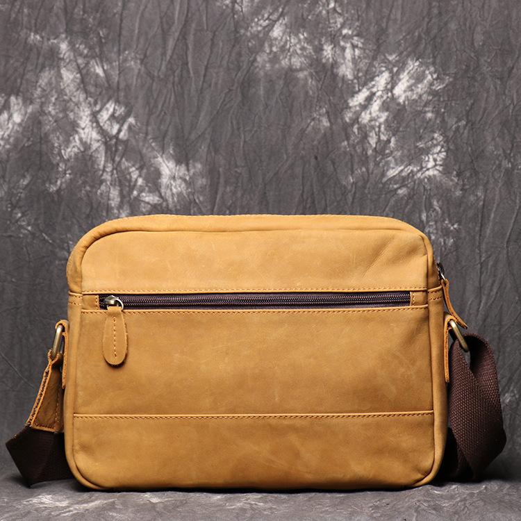 Design: Simple Yellow Brown Leather Men's Vertical Side Bag 10inch Vertical Messenger Bag For Men