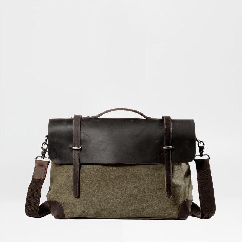 Style: Cool Canvas Leather Mens Casual Office Handbag Shoulder Bag Messenger Bag For Men
