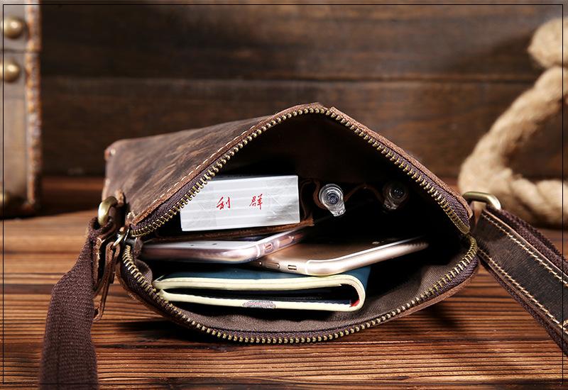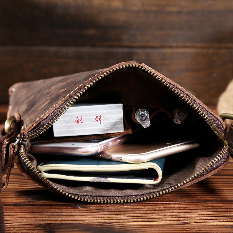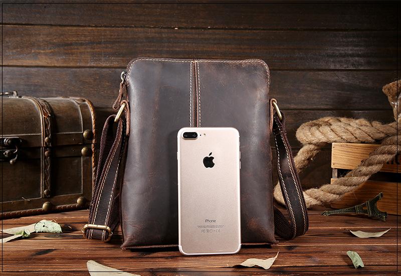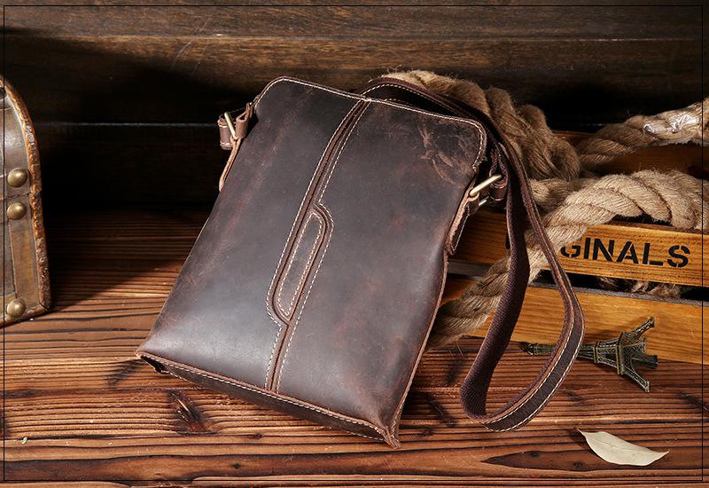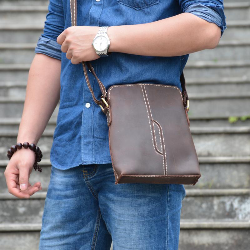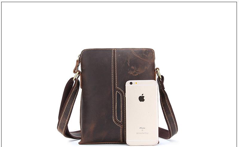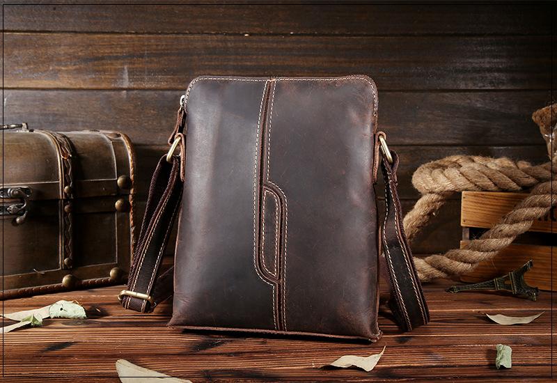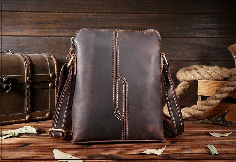 Design: Handmade Leather Mens Cool Small Messenger Bag iPad Bag Chest Bag Bike Bag Cycling Bag for men