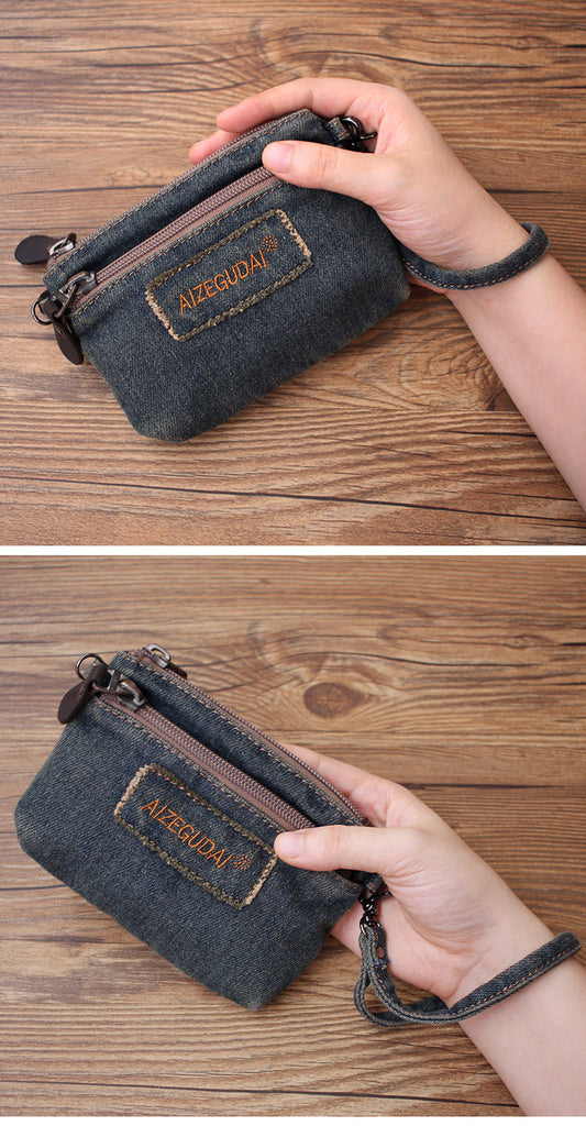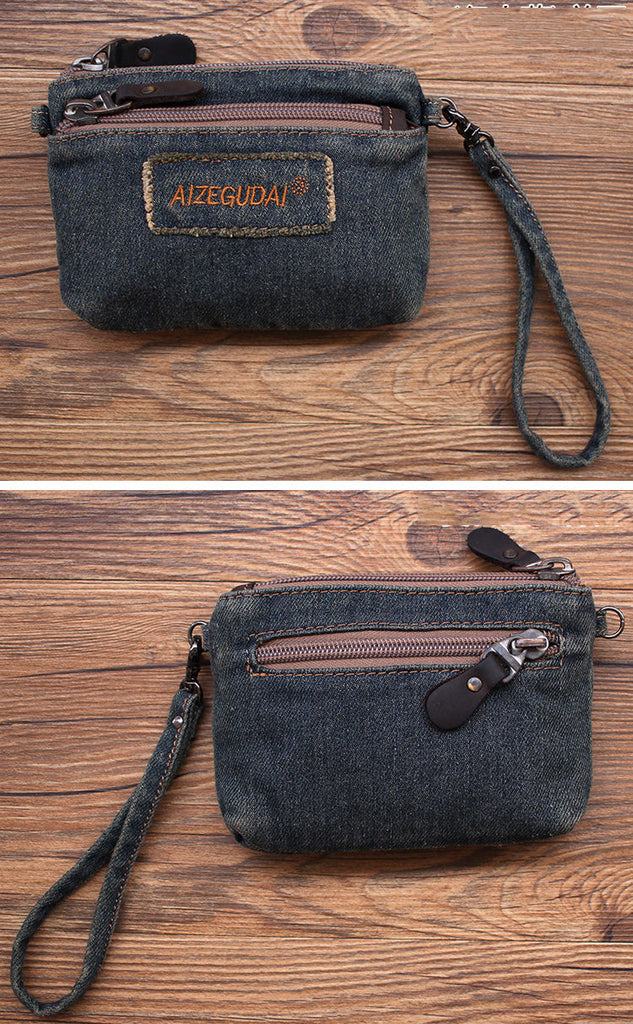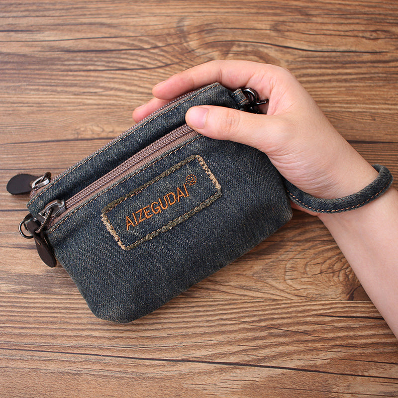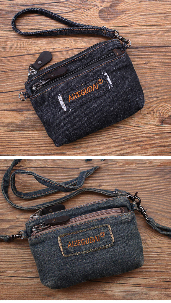 Style: Denim Womens Mini Shoulder Bags Keys Coin Wallet Crossbody Bag Denim Wirstlet Purse