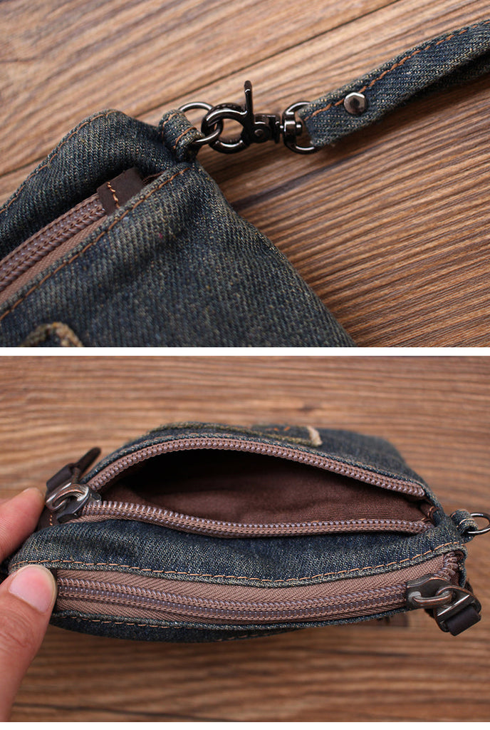 Style: Denim Womens Mini Shoulder Bags Keys Coin Wallet Crossbody Bag Denim Wirstlet Purse