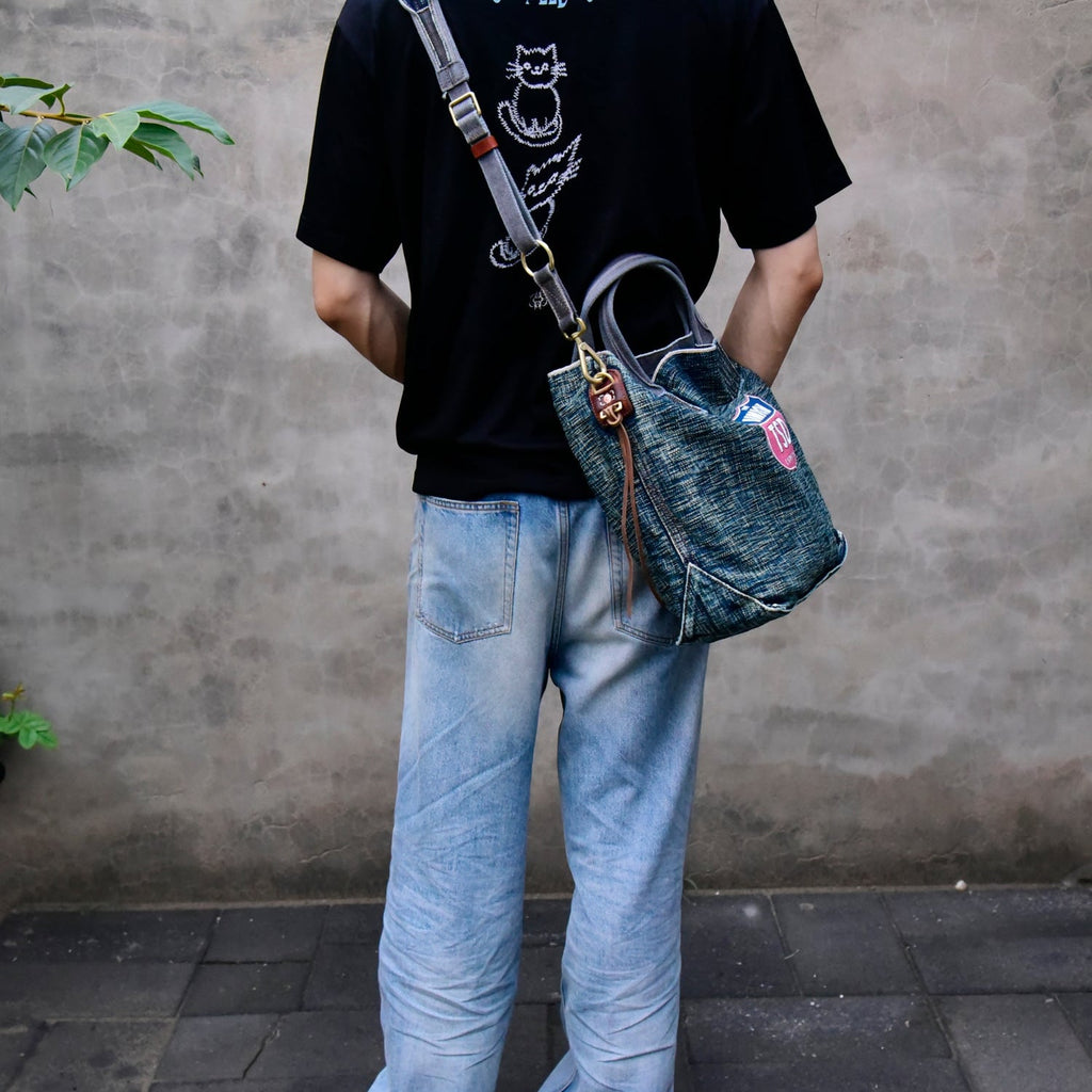 Design:Blue Jean Vertical Tote Bag Denim Tote Handbag Denim Tote Bag Blue Denim Tote Shoulder Bag