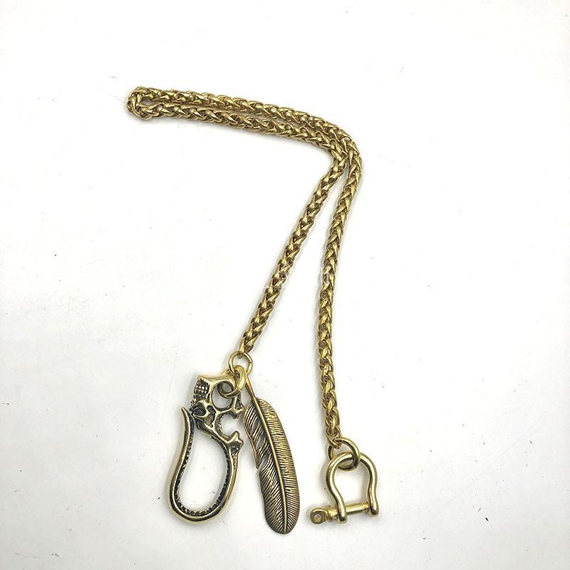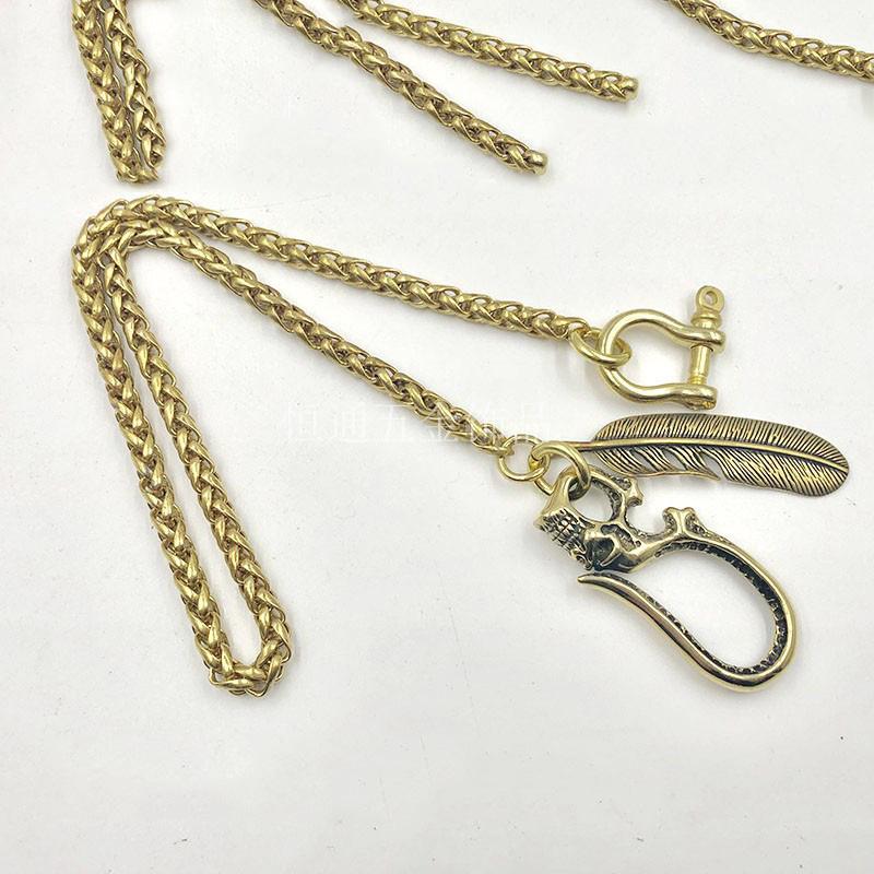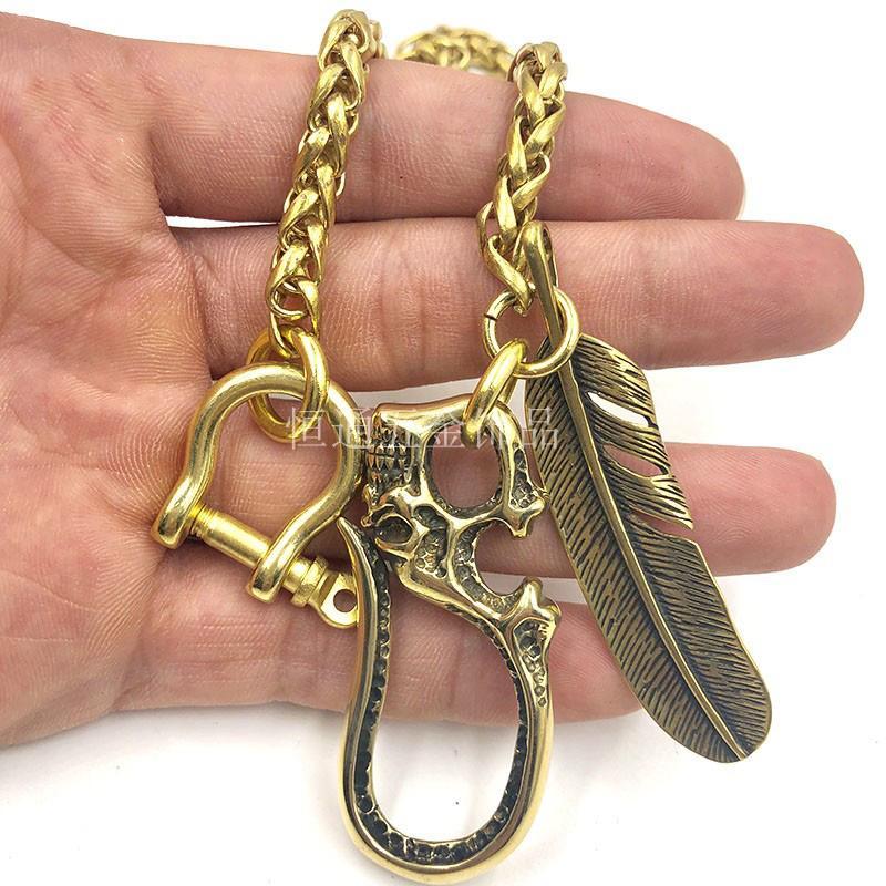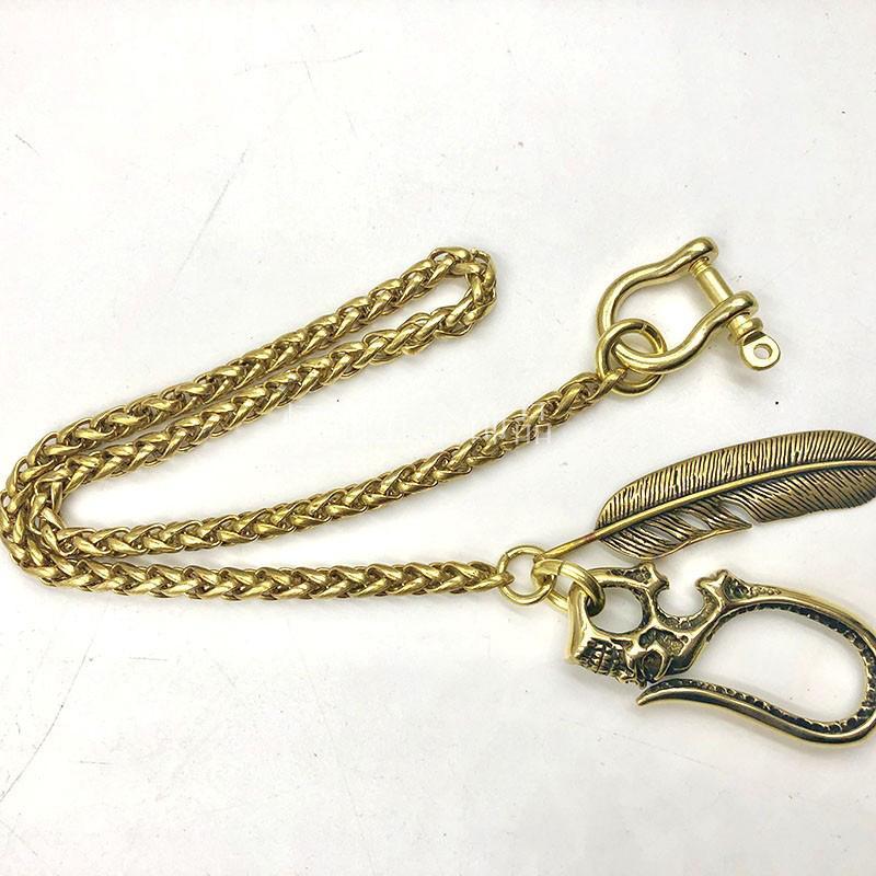Design: Cool SKull Brass Feather 19‘â€?Rock Wallet Chain Biker Pants Chain Jeans Chain Jean Chain for Men