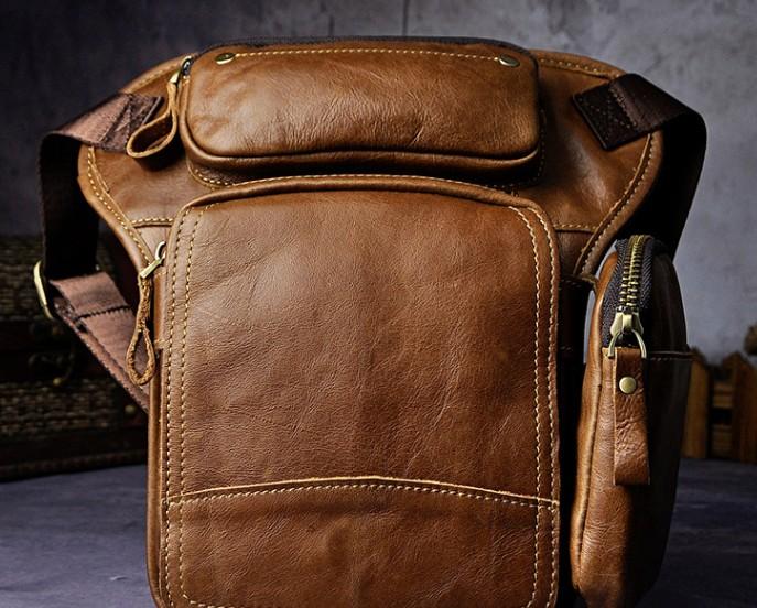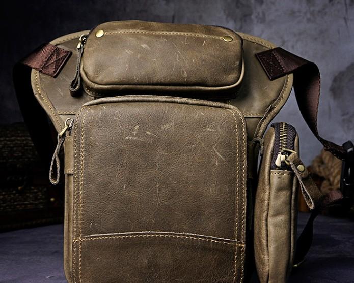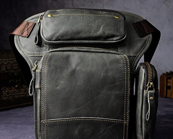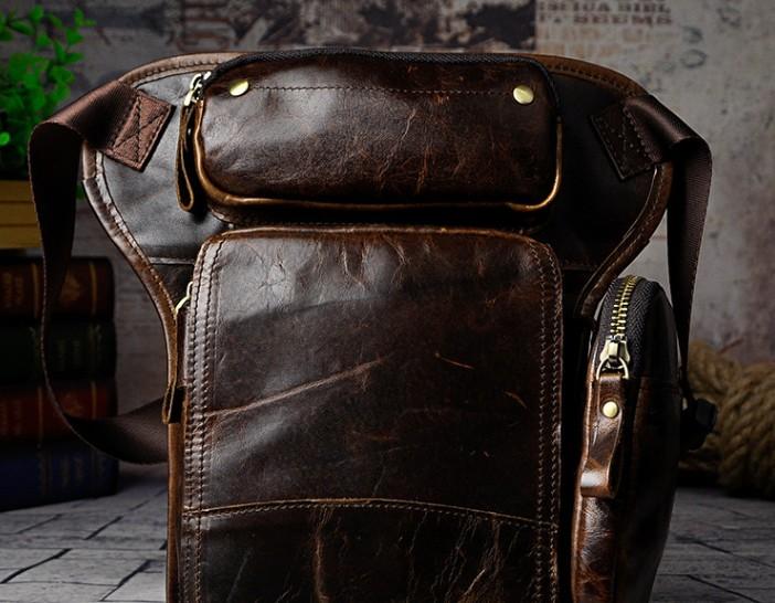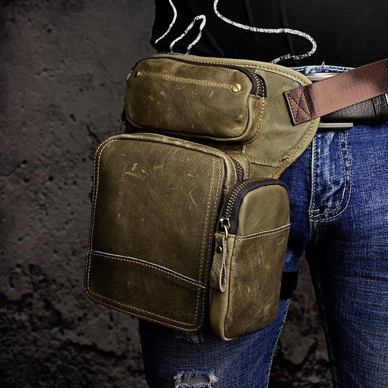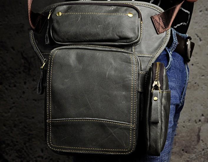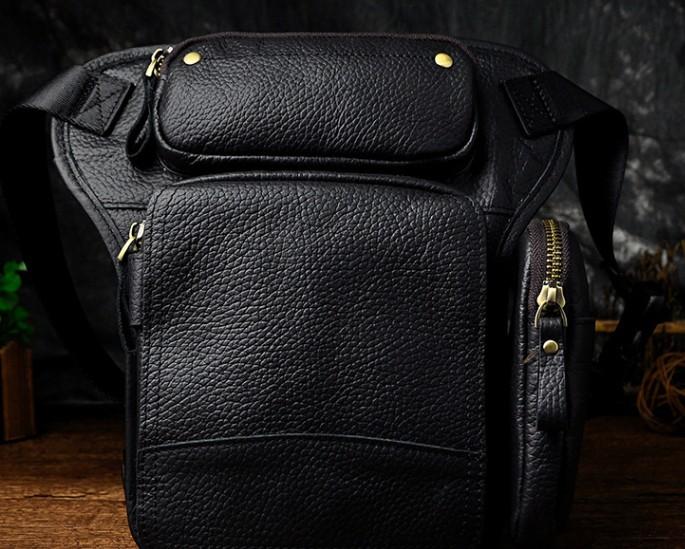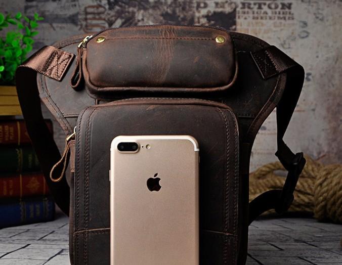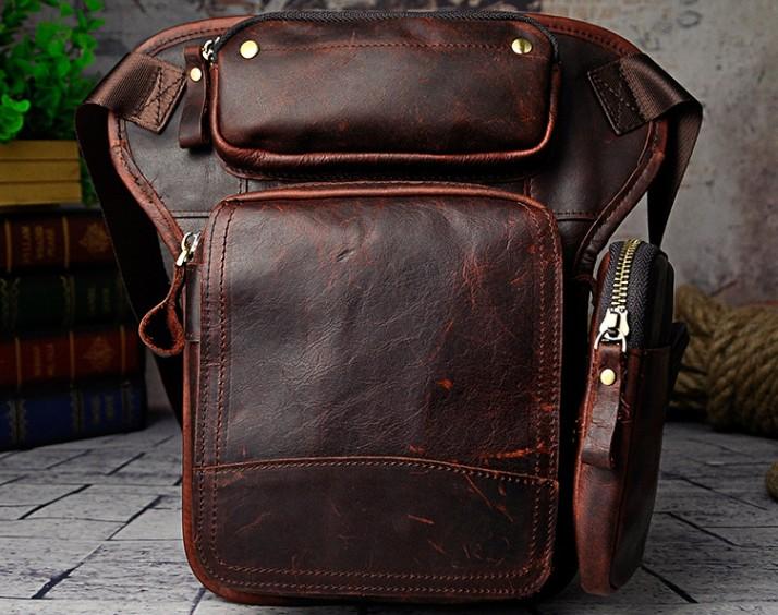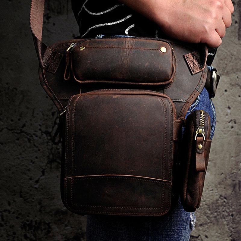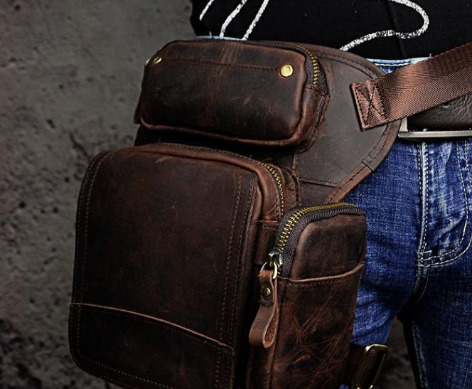 Design: Biker Mens Leather Drop Leg Bag Waist Bag Belt Pouch Pack Side Bag for Men