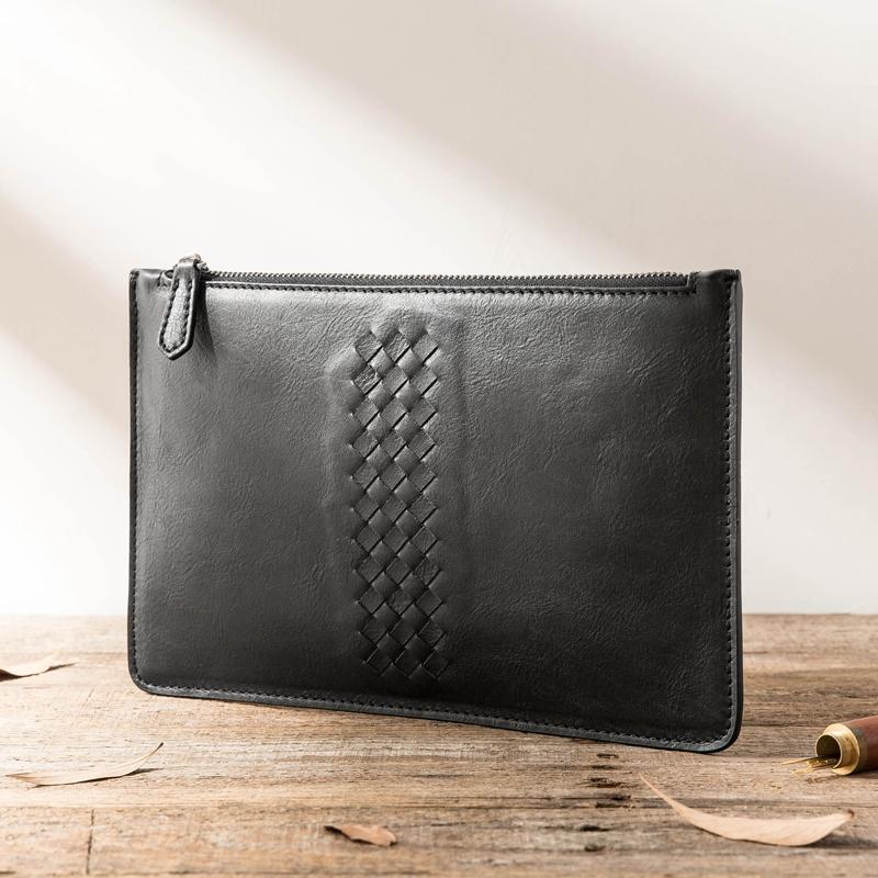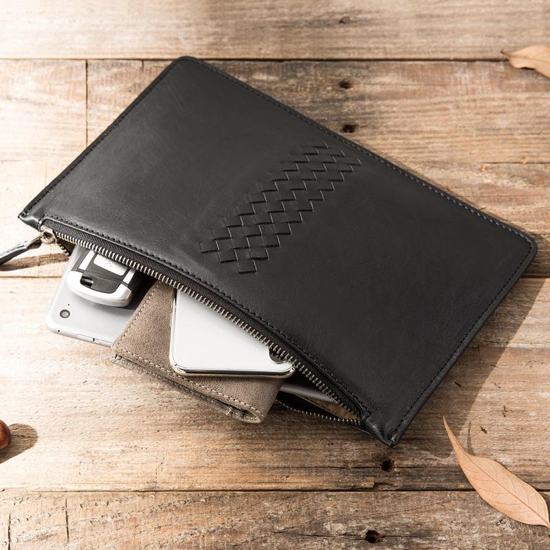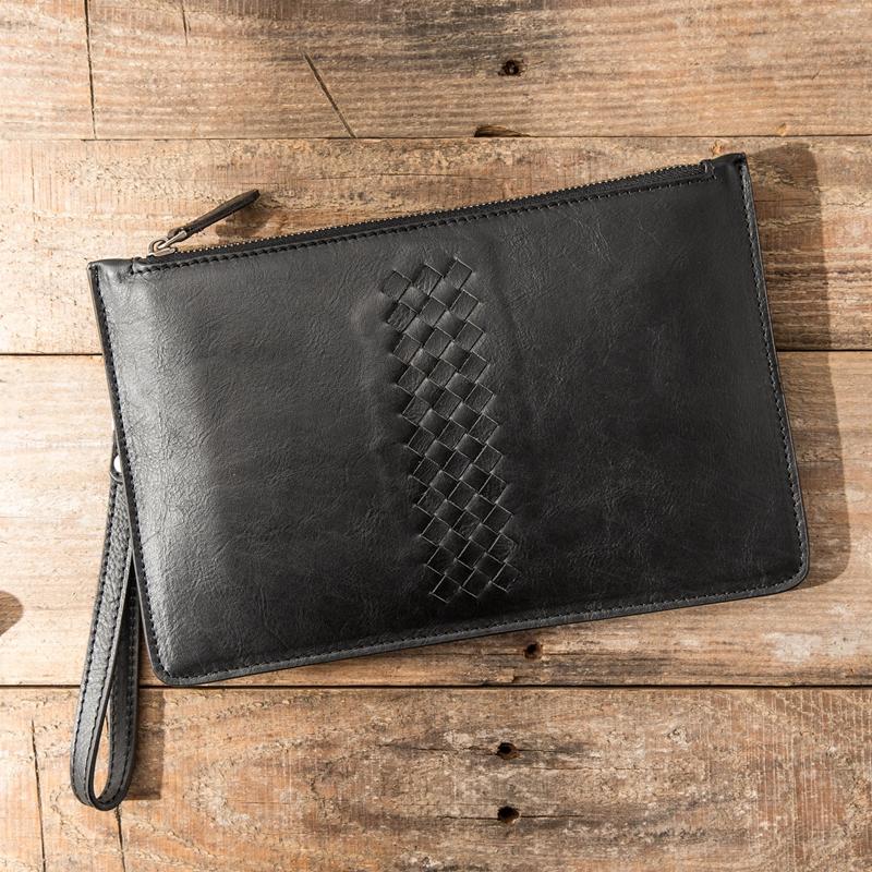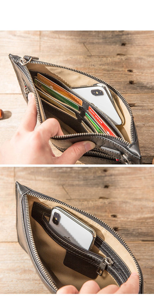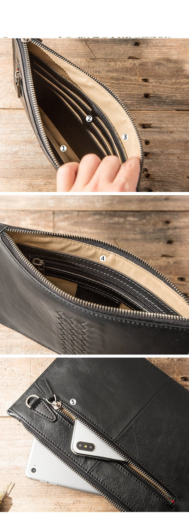 Design: Black Cool Leather Mens 8 inches Long Zipper Clutch Wallet Long Wallet Envelope Bag for Men