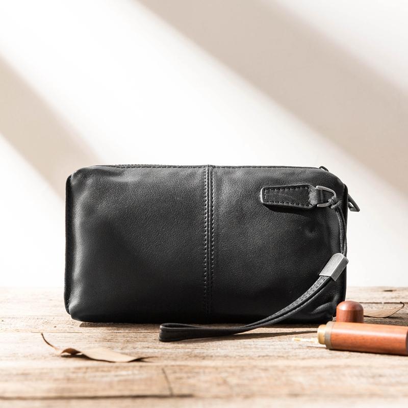 Design: Black Cool Leather Mens 8 inches Long Zipper Clutch Wallet Long Wallet Phone Bag for Men