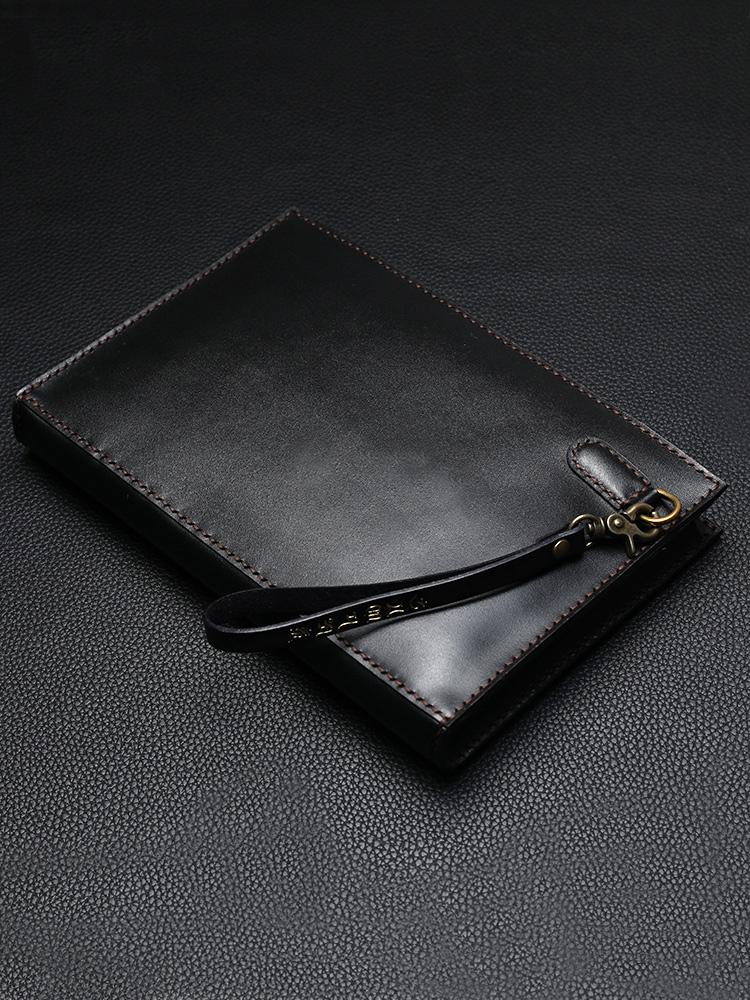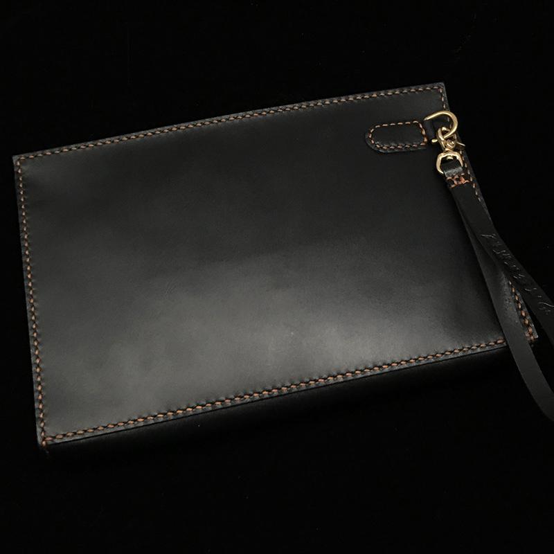 Style: Black Handmade Tooled Leather Mahākāla Clutch Wallet Wristlet Bag Clutch Purse For Men