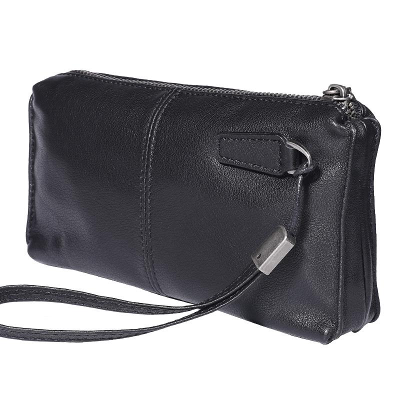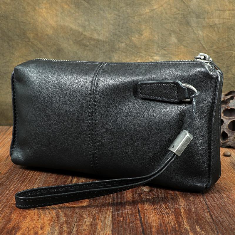 Design: Black Leather Mens Long Wallet Suede Leather Wallet Black Wristlet Clutch Wallet for Men