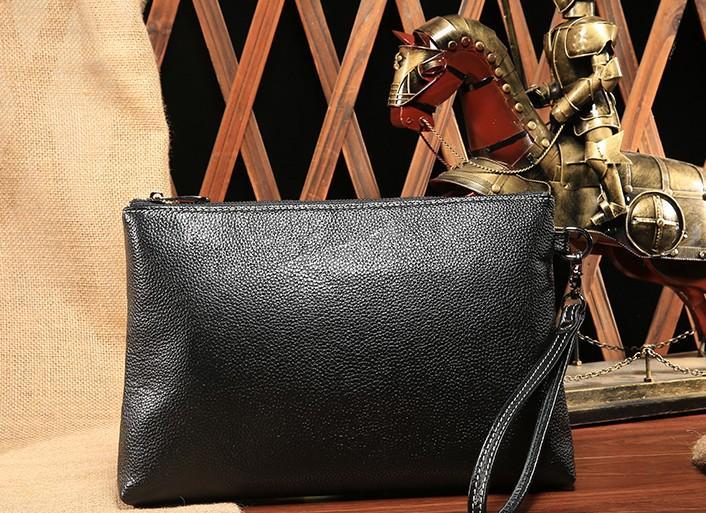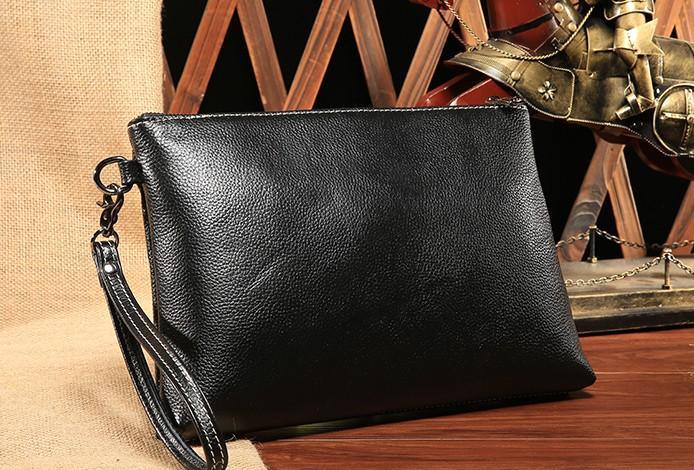 Design: Black Leather Mens Wristlet Wallet Bag Zipper Clutch Wallet For Men