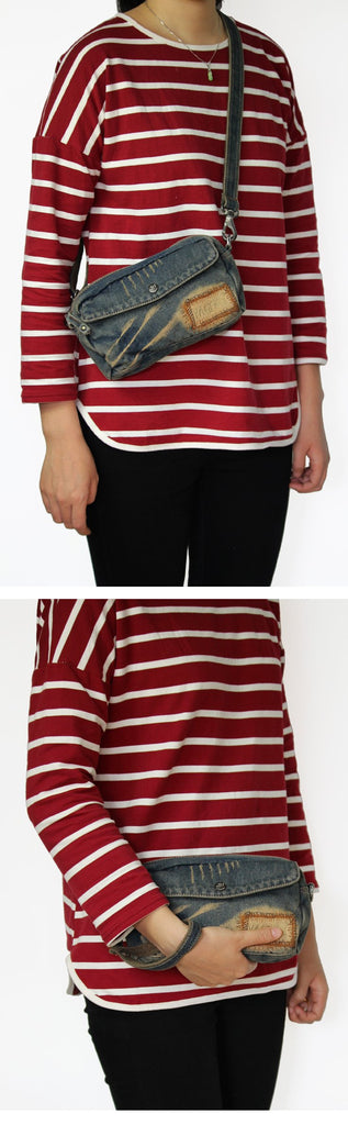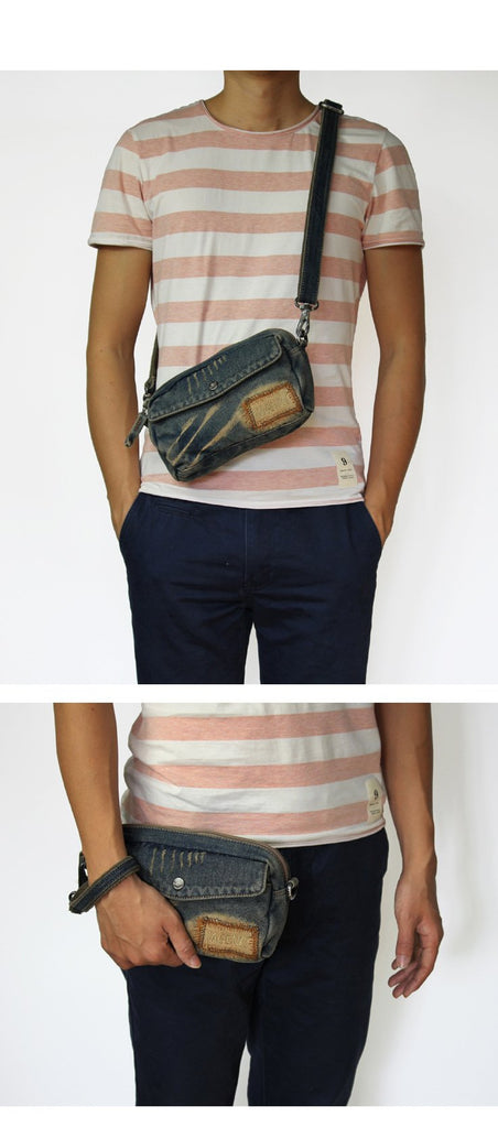 Style: Blue Denim Mens Casual Small Messenger Bags Jean Clutch Bag Courier Bag For Men