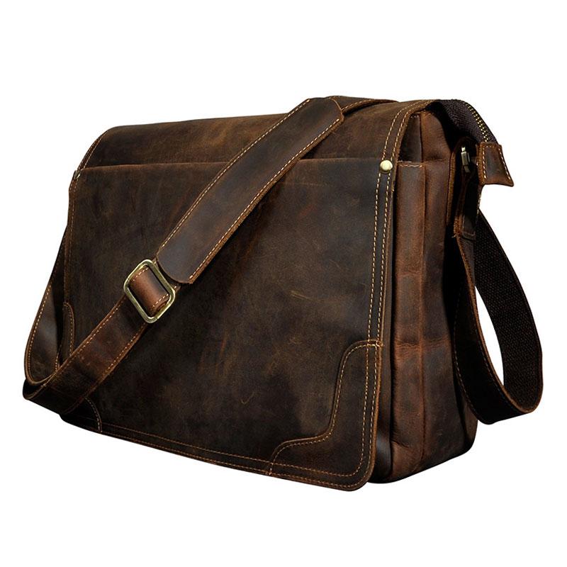 Style: Brown Leather Mens SIDE BAG COURIER BAG Messenger Bag Shoulder Bag for Men