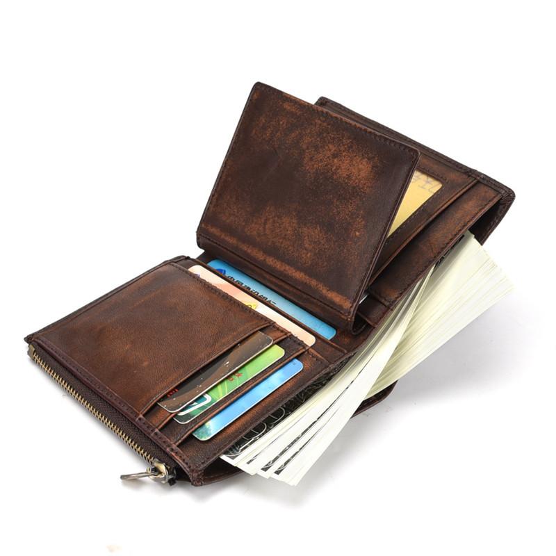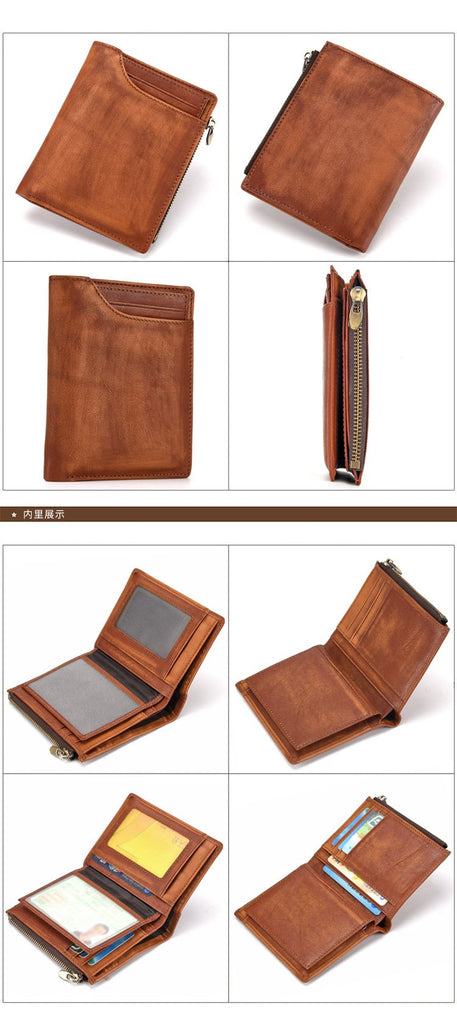Design: Brown MENS LEATHER Bifold Wallet Short Wallet Card Wallet Dark Brown Coin Wallet FOR MEN