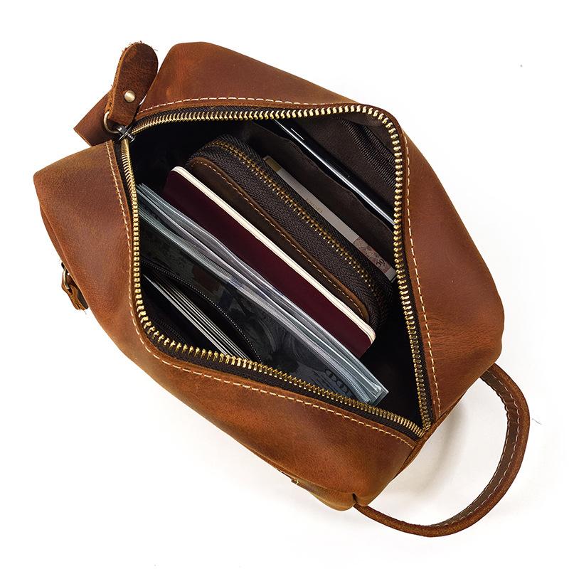 Design: Brown MENS LEATHER ZIPPER CLUTCH WRISTLET PURSE CLUTCH BAG STORAGE BAG FOR MEN
