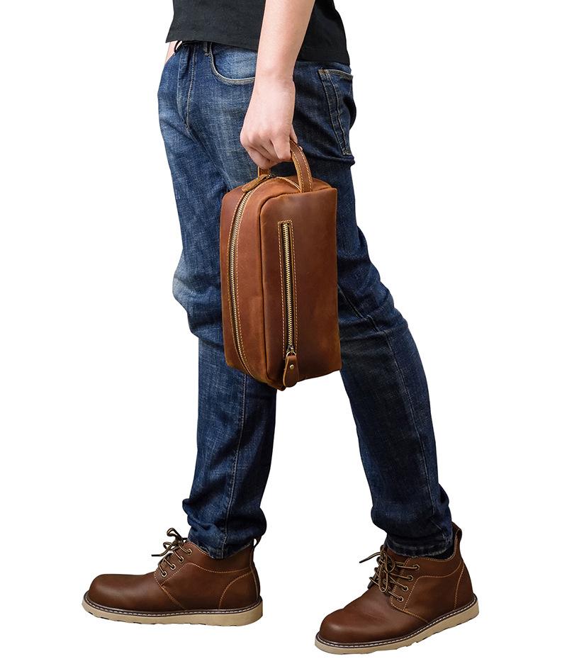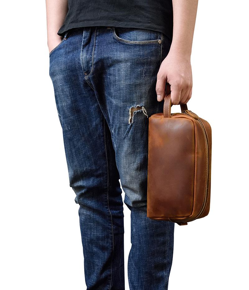 Style: Brown MENS LEATHER ZIPPER CLUTCH WRISTLET PURSE CLUTCH BAG STORAGE BAG FOR MEN