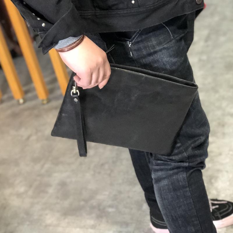 Style: Business Black Handmade Leather Mens Long Wallet Wristet Wallet Clutch Wallet Hand Bag For Men
