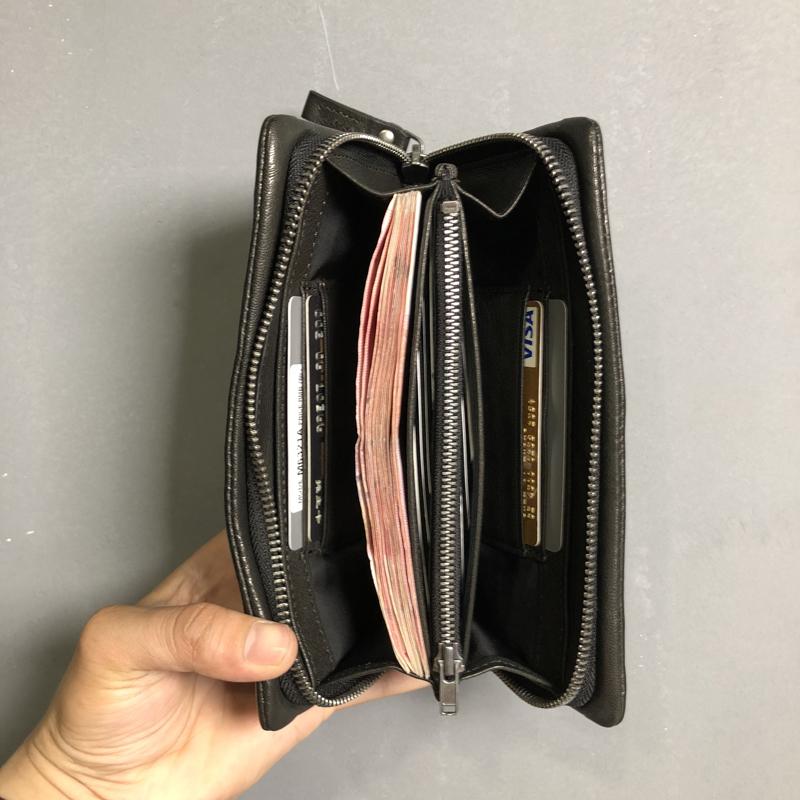Design: CASUAL BLACK LEATHER MEN'S Long Wallet Clutch Wallet BLACK Wristlet Wallets Card Wallet FOR MEN
