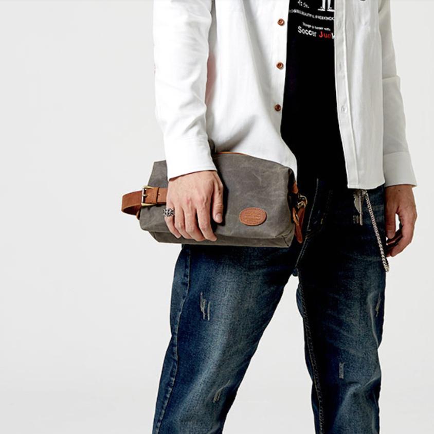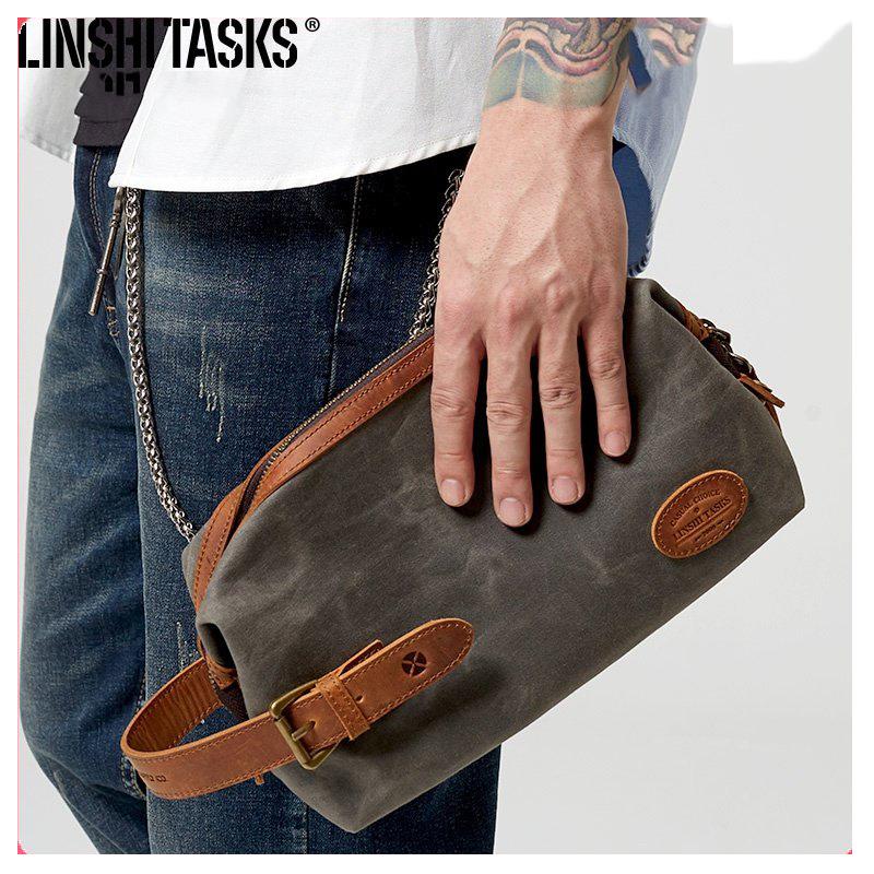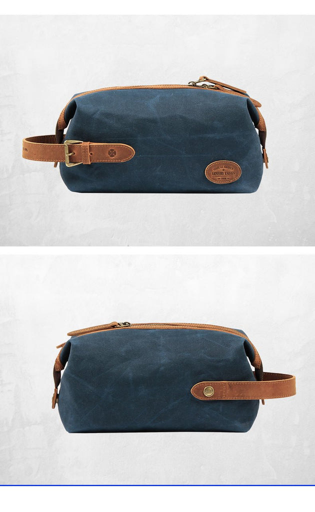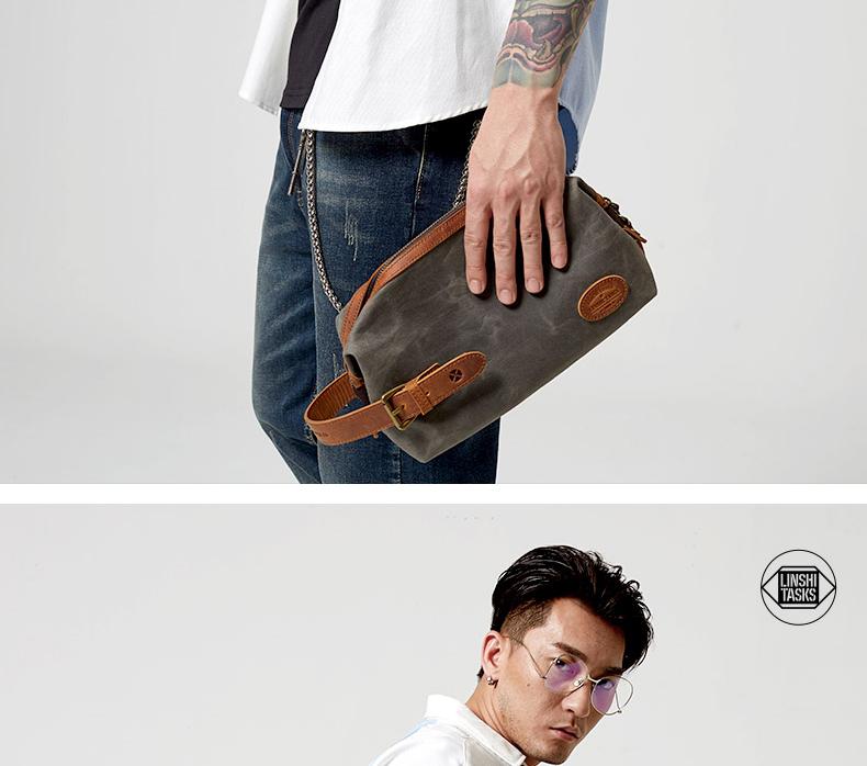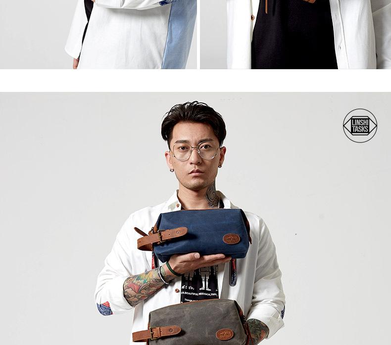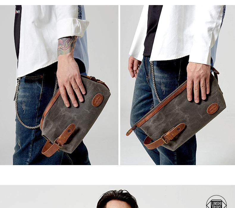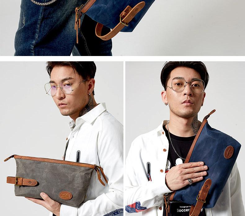 Style: Casual Light Gray Canvas Leather Men's Navy Blue Casual Clutch Bag Hand Bag For Men