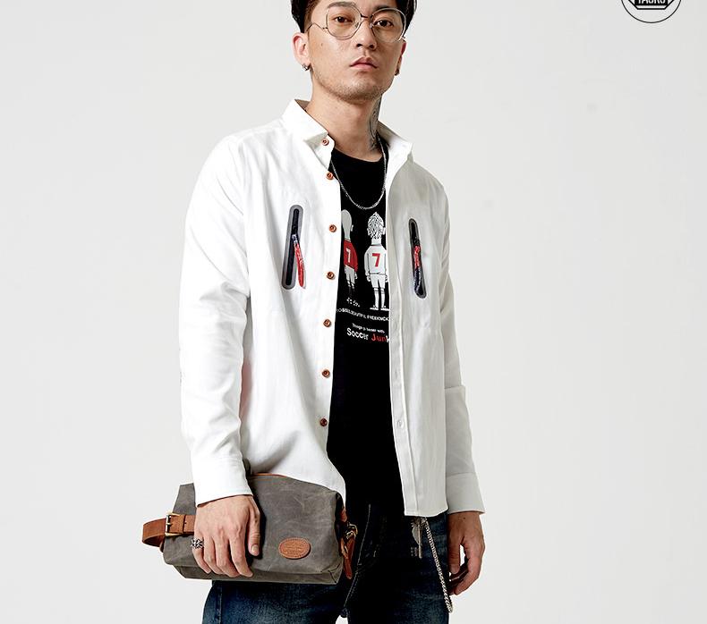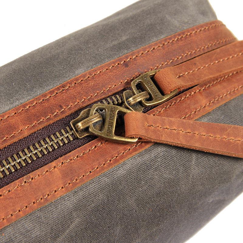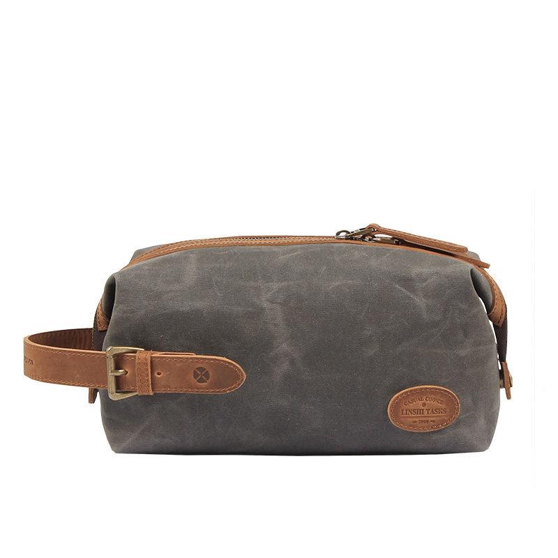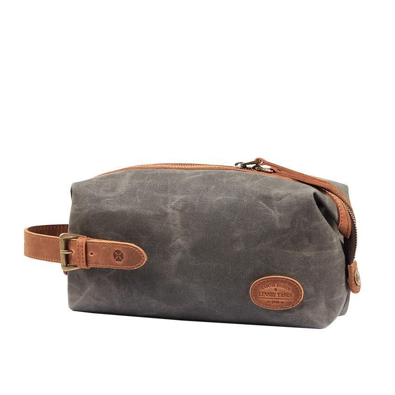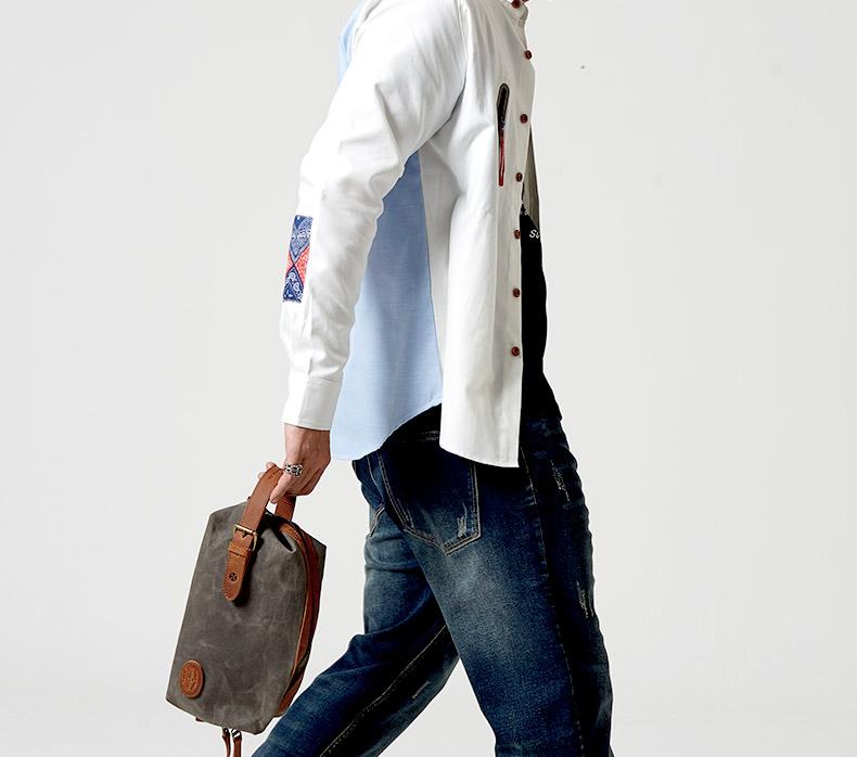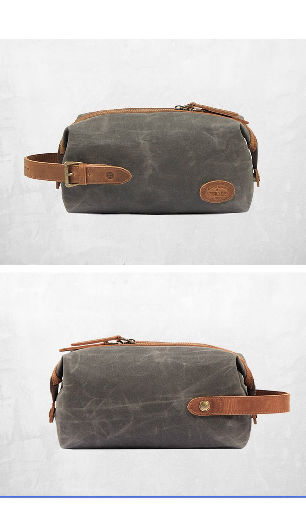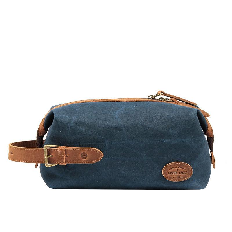 Style: Casual Light Gray Canvas Leather Men's Navy Blue Casual Clutch Bag Hand Bag For Men