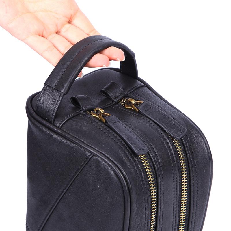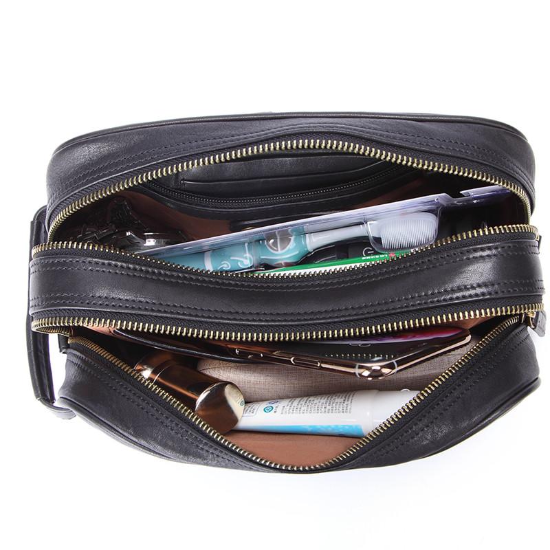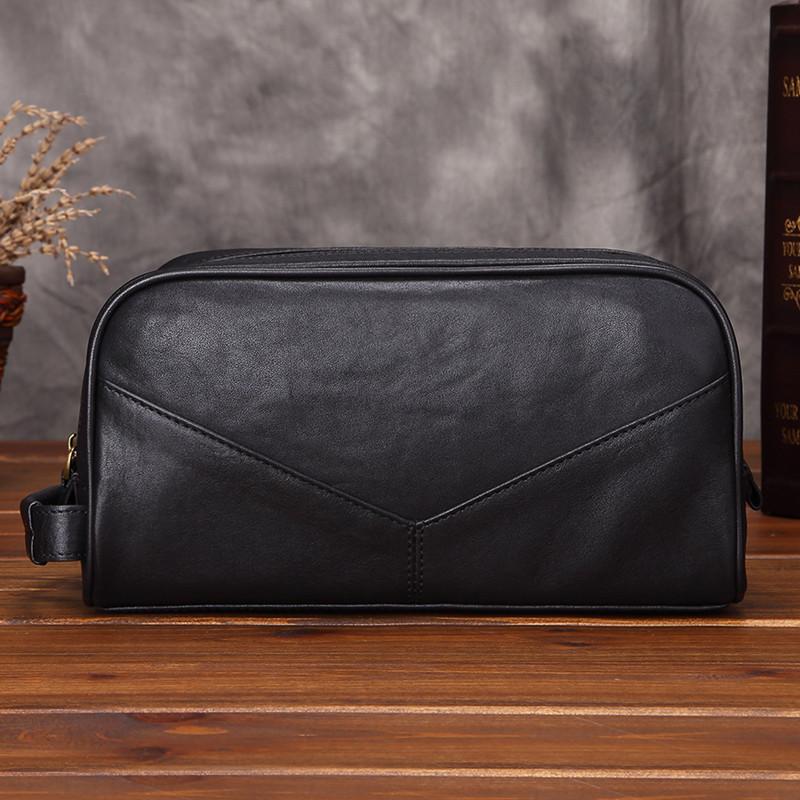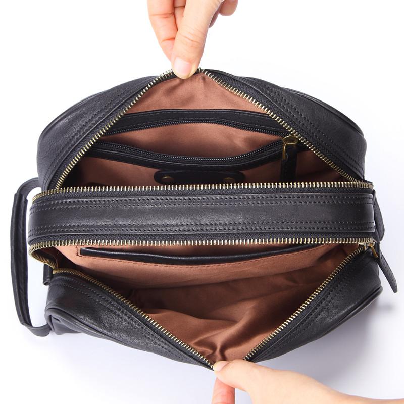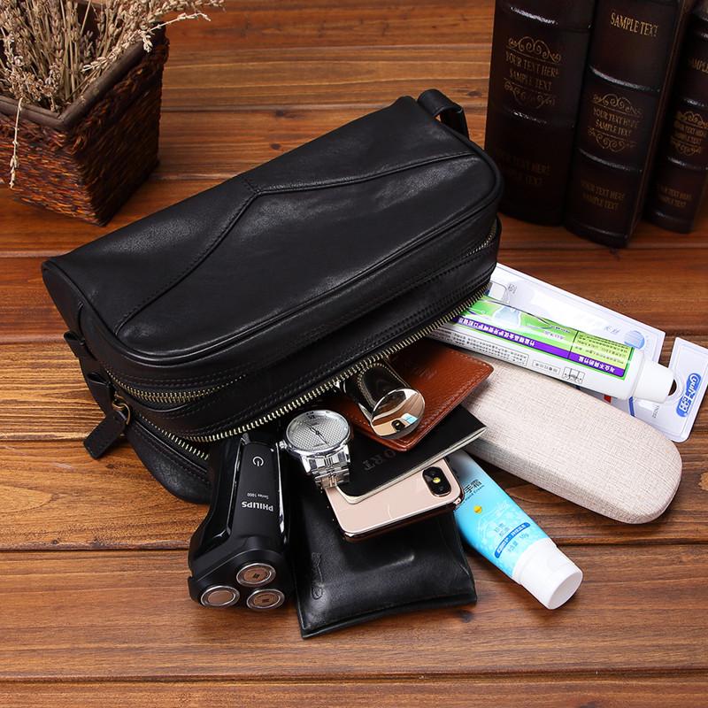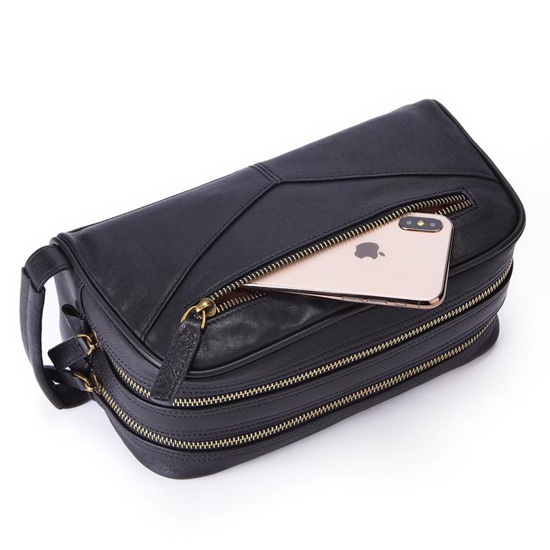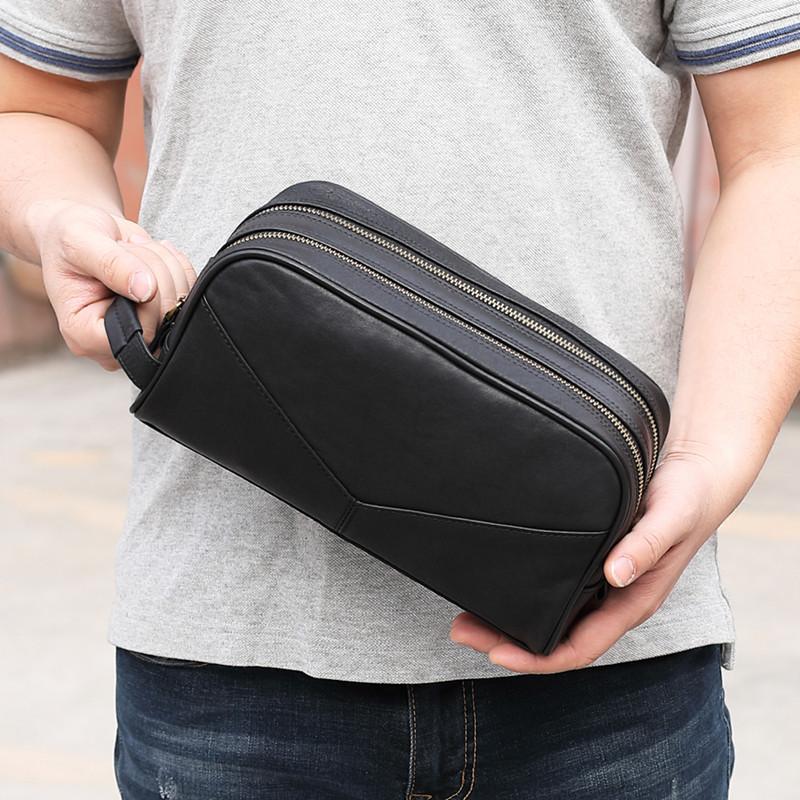 Design: Casual Black Leather Men's Wristlet Bag Double Zipper Clutch Bag For Men