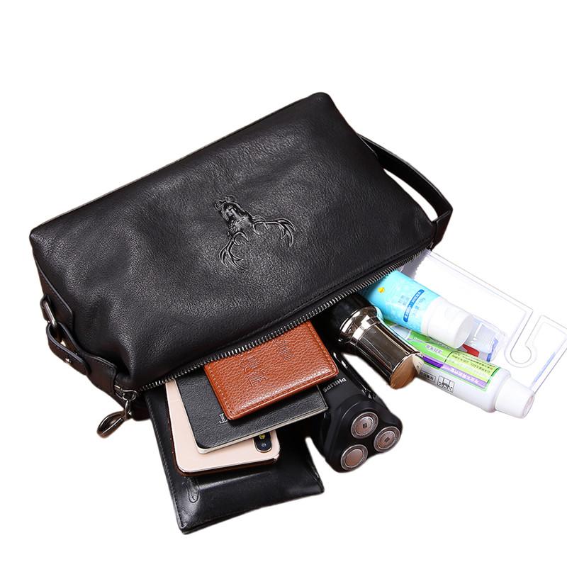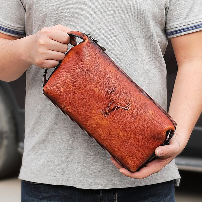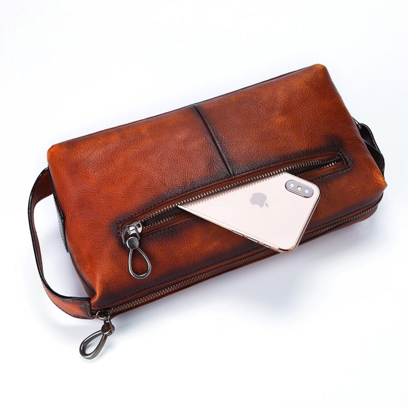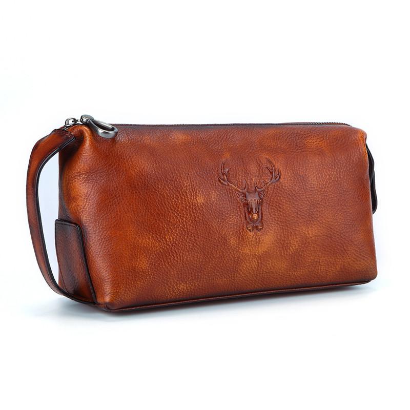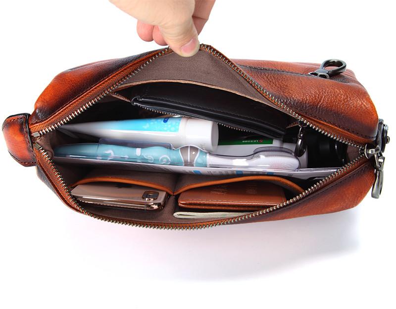 Design: Leather Toiletry Bag for Men Cool Brown Leather Men's Clutch Bag Leather Dopp Kit Bag