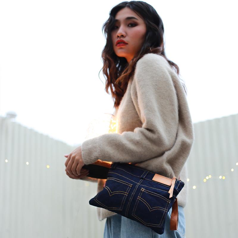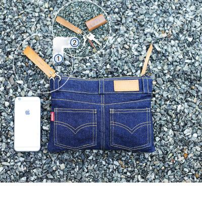 Design: Cool Blue Jean Mens Clutch Bag Wristlet Wallet Zipper Clutch Wallet For Men