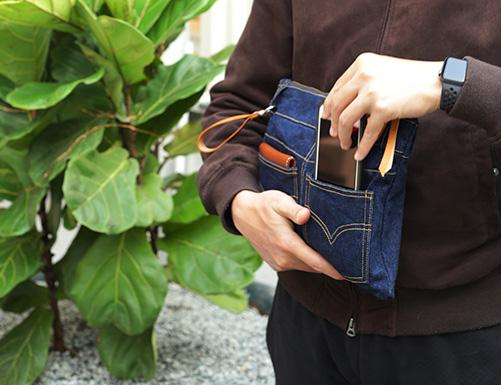 Design: Cool Blue Jean Mens Clutch Bag Wristlet Wallet Zipper Clutch Wallet For Men
