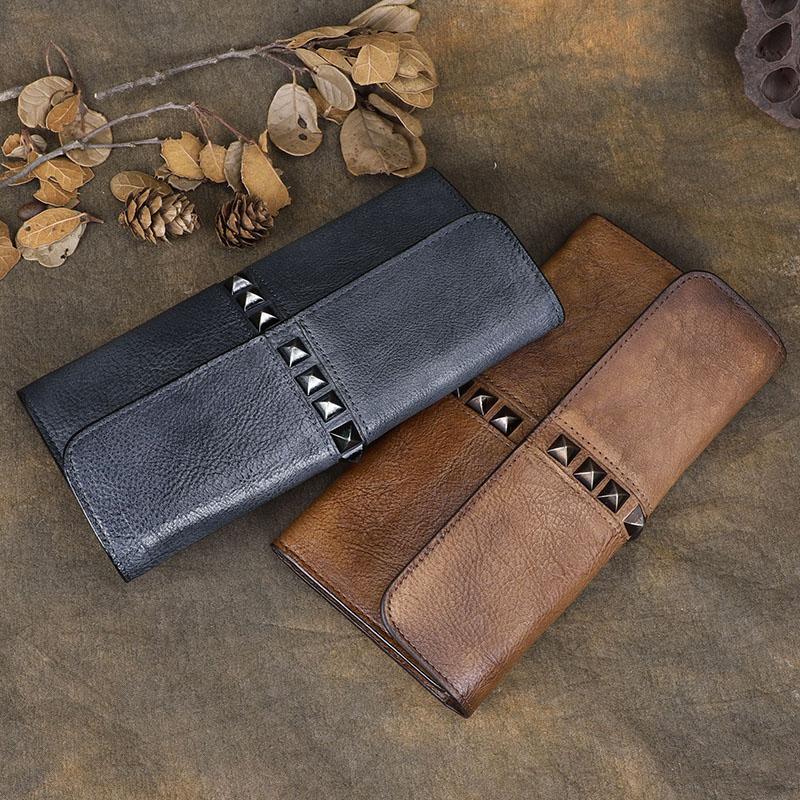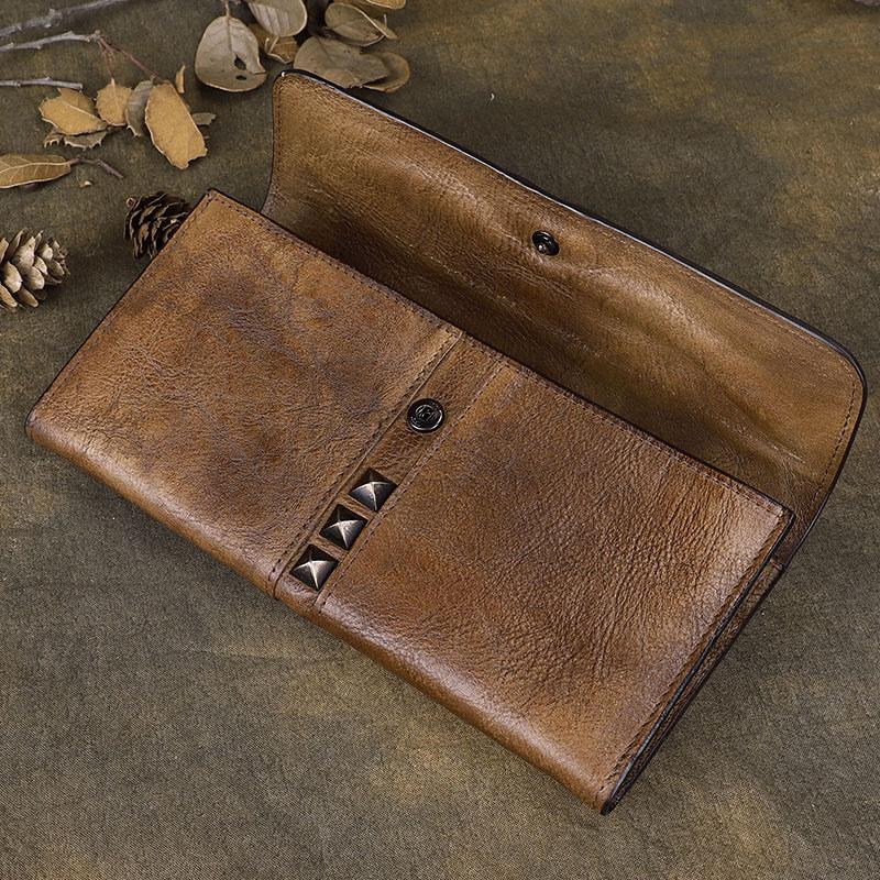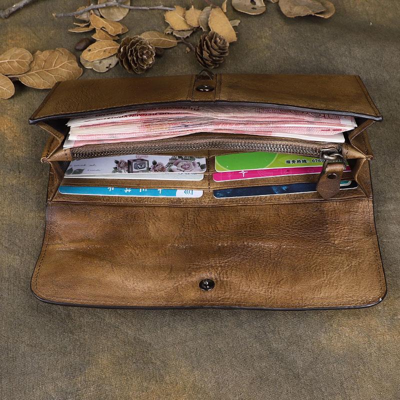 Design: Cool Brown Leather Mens Long Wallet Card Wallet Chain Wallet Gray Wristlet Clutch Wallet for Men