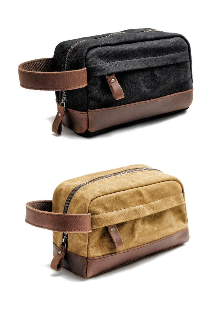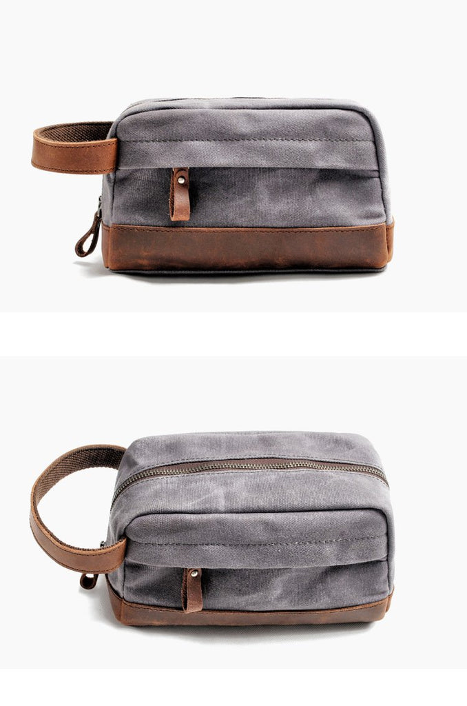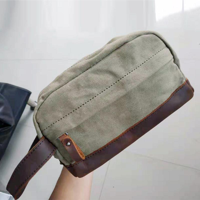Style: Cool Canvas Leather Mens Clutch Bag Handbag Storage Bag Wash Bag For Men