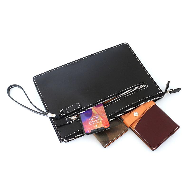 Design: Cool Leather Mens Clutch Wristlet Bag Vintage Zipper Clutch for Men