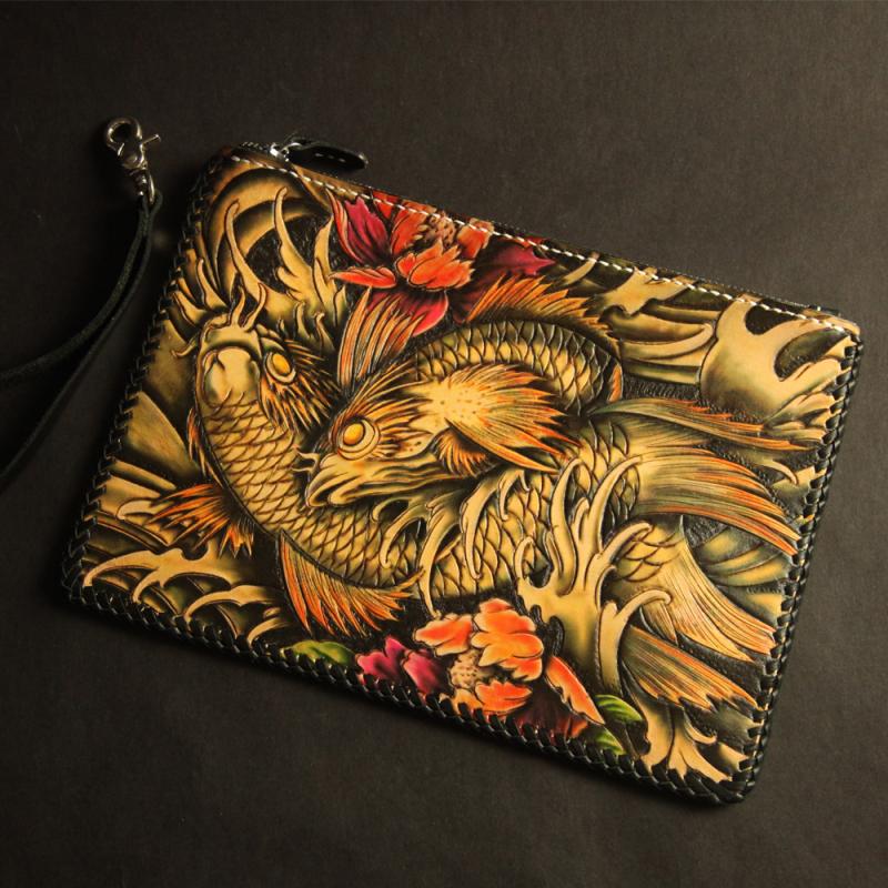 Design: Cool Handmade Tooled Leather Lion Clutch Wallet Wristlet Bag Clutch Purse For Men