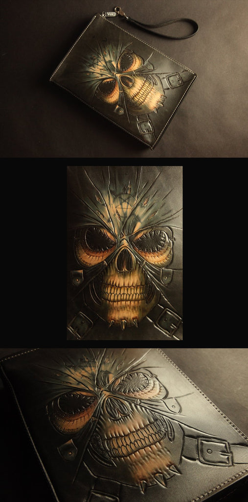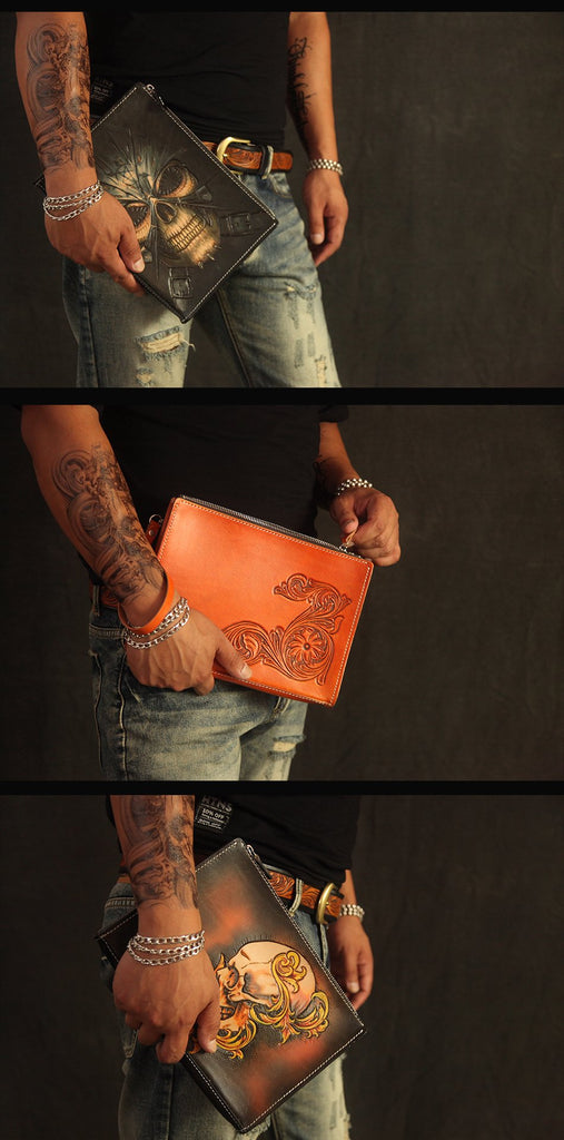 Design: Cool Handmade Tooled Leather Lion Clutch Wallet Wristlet Bag Clutch Purse For Men