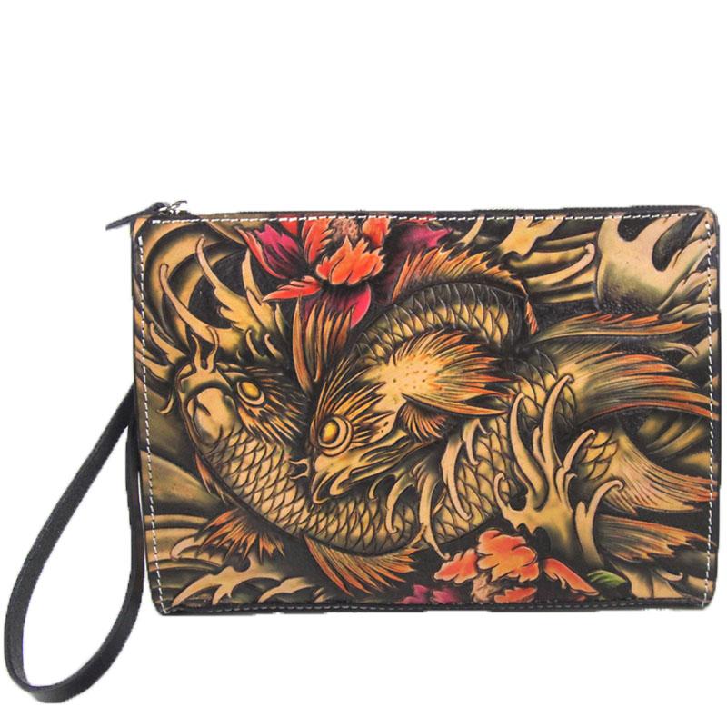 Style: Cool Handmade Tooled Leather Lion Clutch Wallet Wristlet Bag Clutch Purse For Men