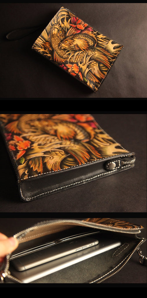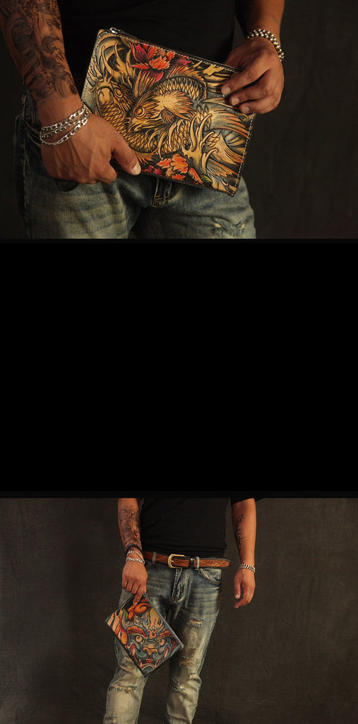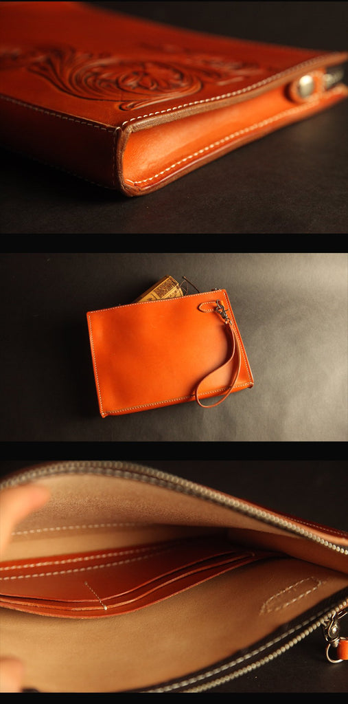 Design: Cool Handmade Tooled Leather Lion Clutch Wallet Wristlet Bag Clutch Purse For Men