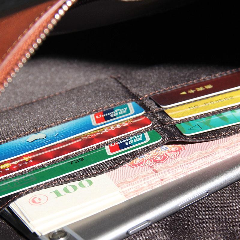 Slots: 1 Main slot, 1 wallet slot, 1 phone slot, 6 card slots
