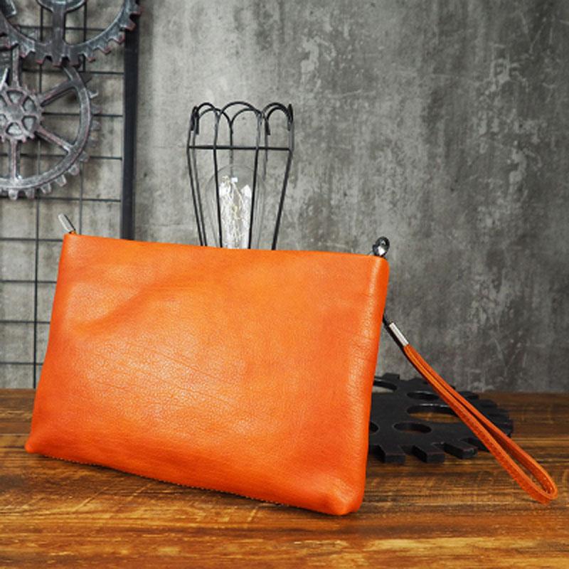 Style: Cool Leather Mens Soft Leather Zipper Clutch Bag Wristlet Purse for Men
