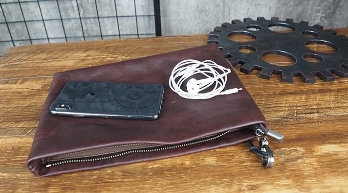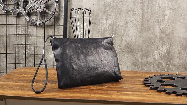 Design: Cool Leather Mens Soft Leather Zipper Clutch Bag Wristlet Purse for Men