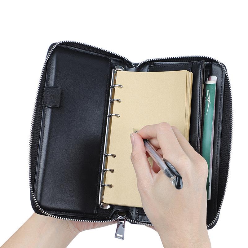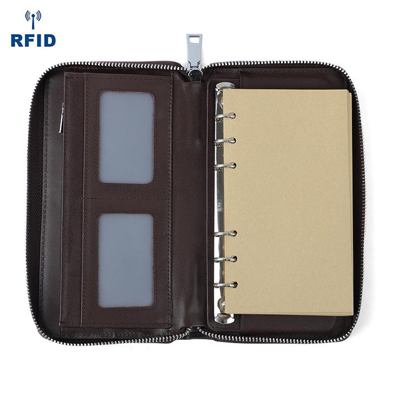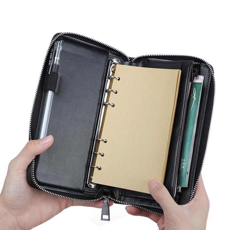 Brown Leather Mens Business Wristlet Wallet Note Book Wallet Bag Zipper Clutch Travel Wallet For Men