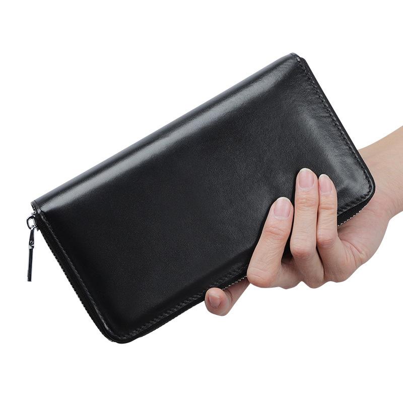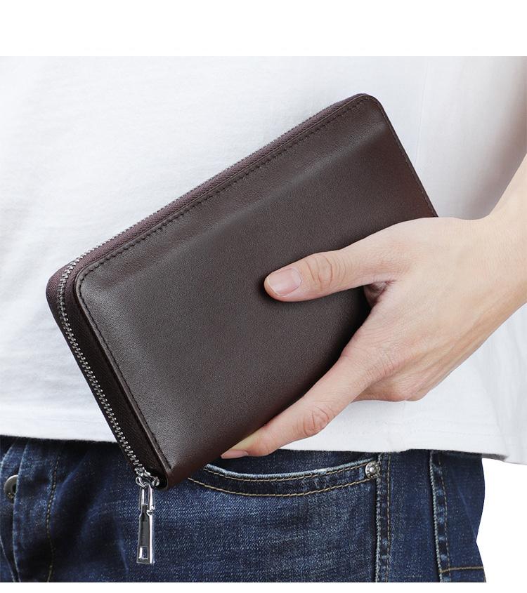 Design: Dark Brown Leather Mens Large Business Wristlet Wallet Bag Zipper Clutch Travel Wallet For Men