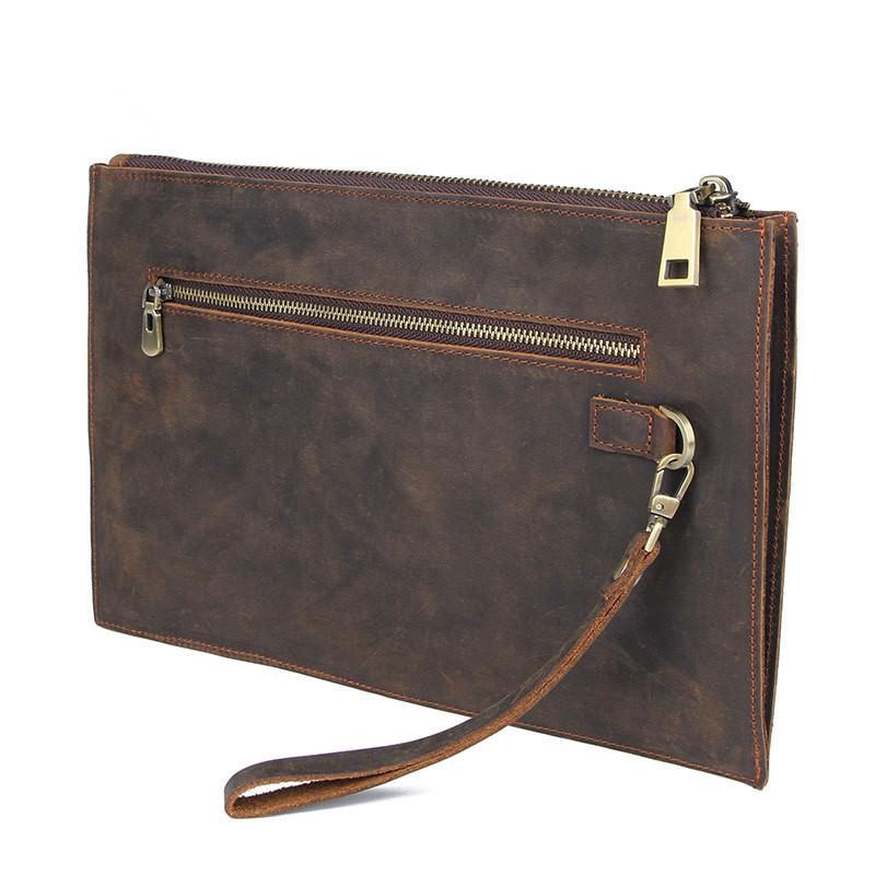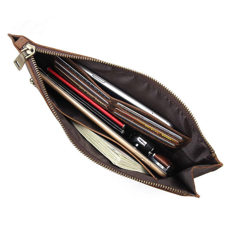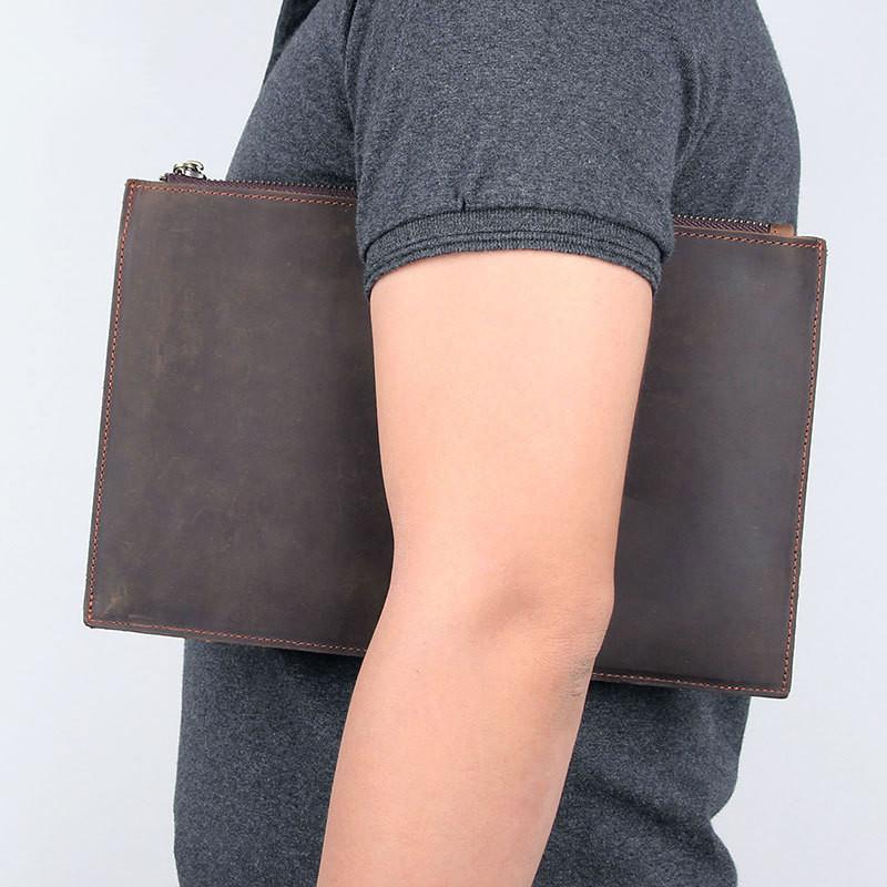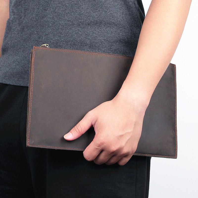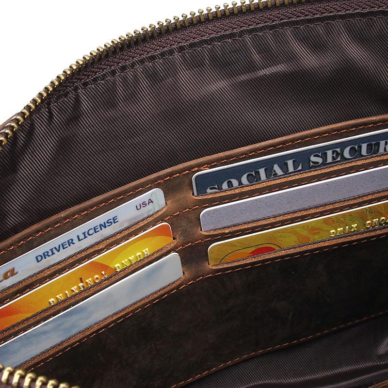 Design: Dark Brown Leather Mens Wristlet Wallet Bag Zipper Clutch Wallet For Men