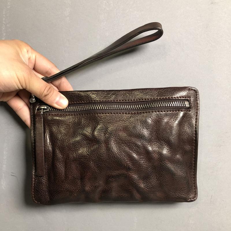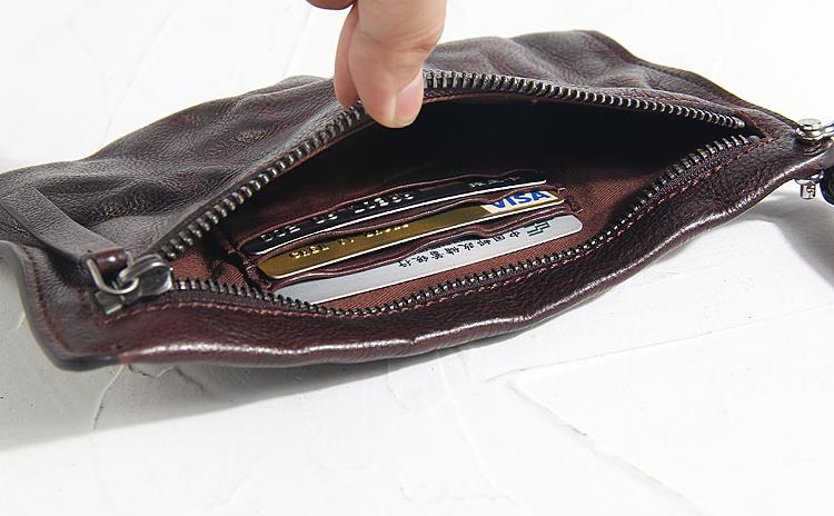 Design: Fashion Leather Mens Clutch Cool Black Slim Wallet Zipper Clutch Wristlet Wallet for Men