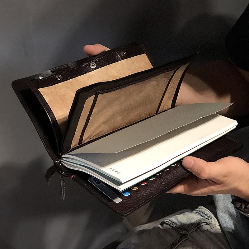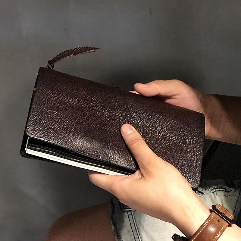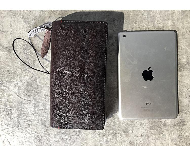 Design: Genuine Leather Black Mens Clutch Bag Notebook Case Brown Multi-function Clutch Wallet for Men