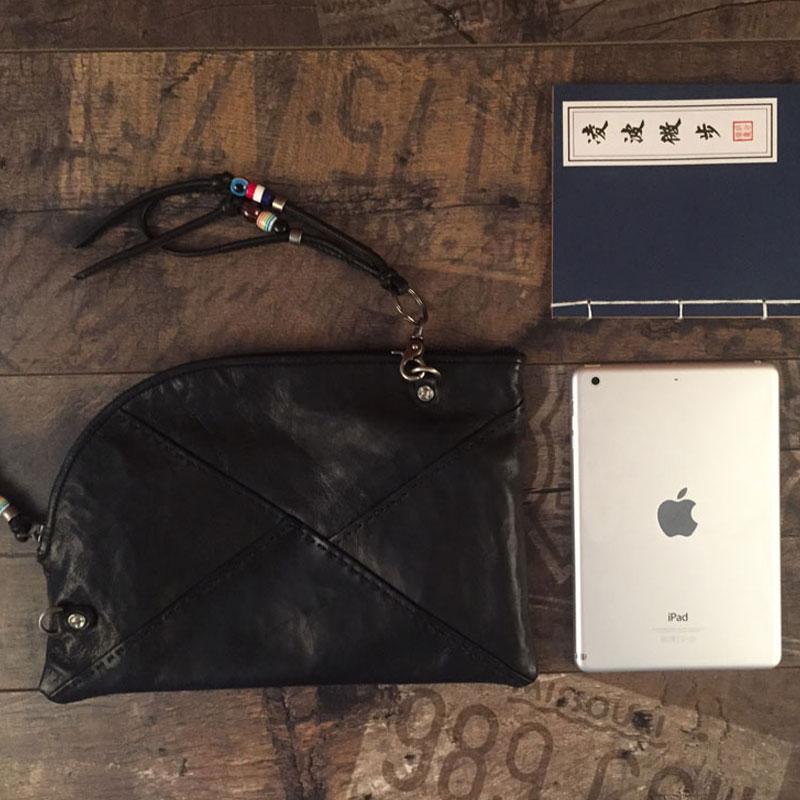 Design: Genuine Leather Braided Mens Clutch Cool Slim Shoulder Bag Zipper Clutch Wristlet Wallet for Men