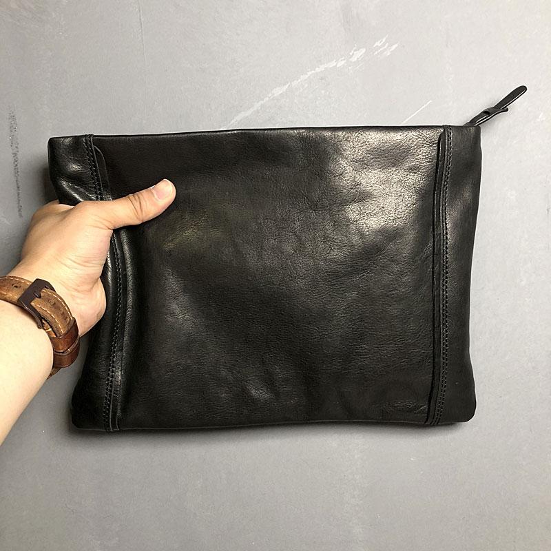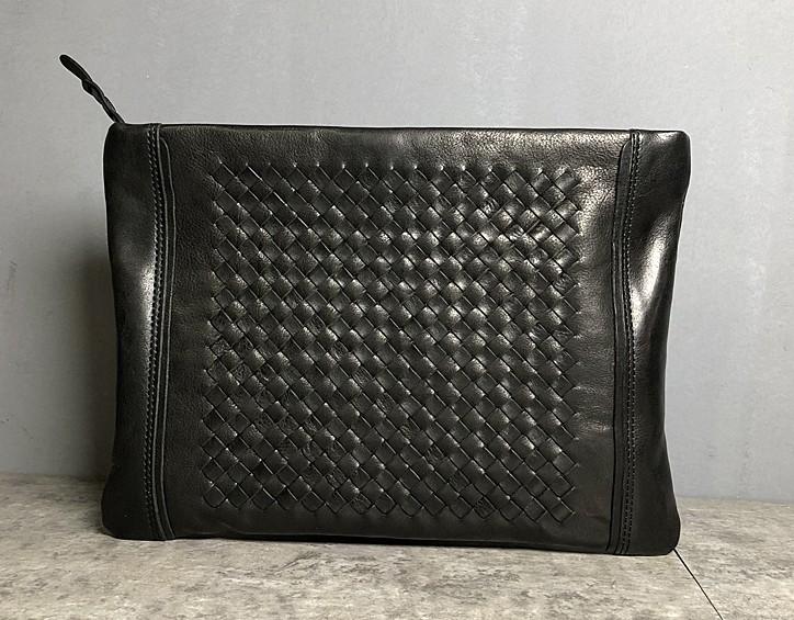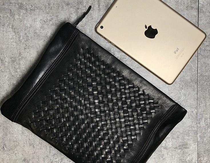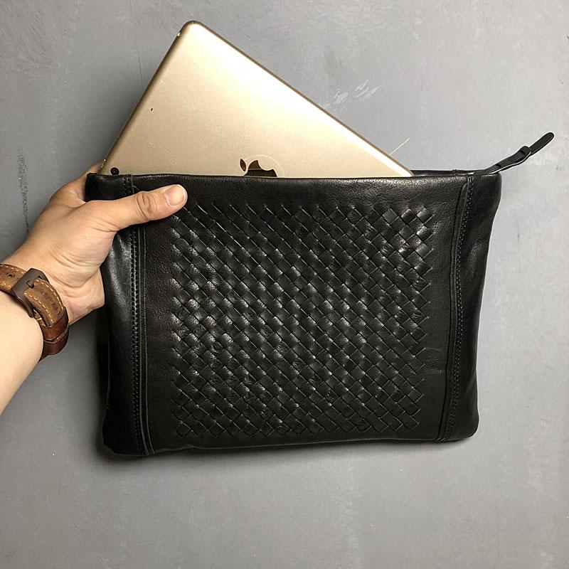 Design: Genuine Leather Braided Mens Clutch Cool Slim Wallet Zipper Clutch Wristlet Wallet for Men