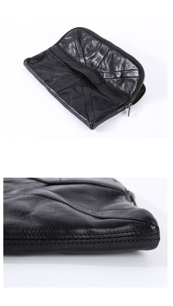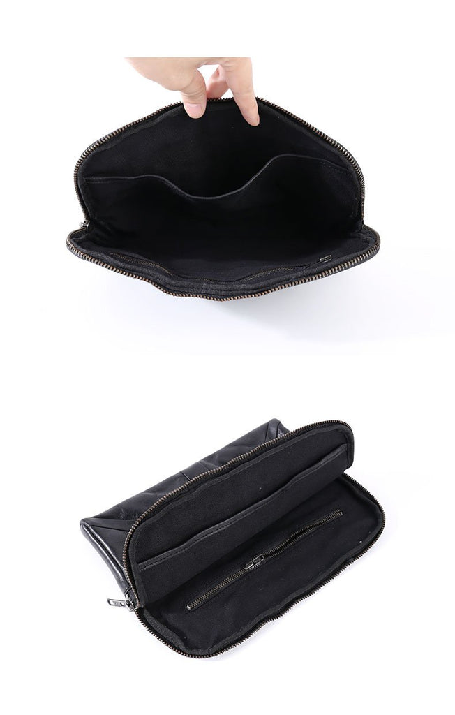 Style: Genuine Leather Business Mens Clutch Cool Black Hand Bag Zipper Clutch Wristlet Large Clutch for Men