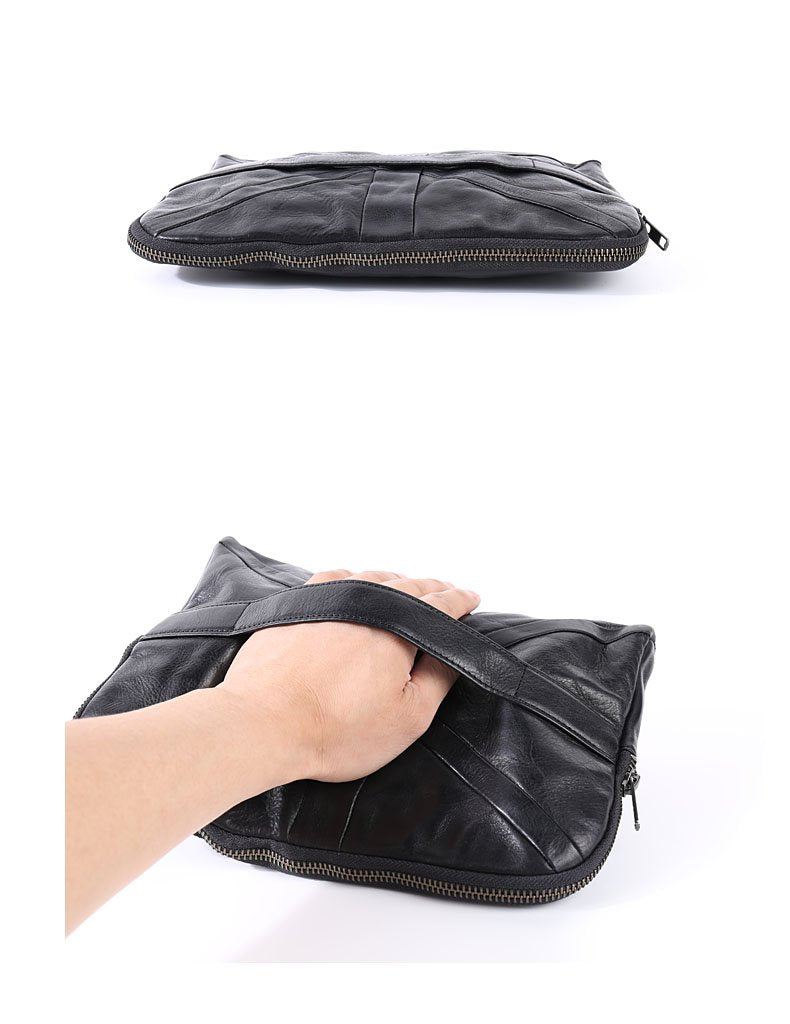 Design: Genuine Leather Business Mens Clutch Cool Black Hand Bag Zipper Clutch Wristlet Large Clutch for Men