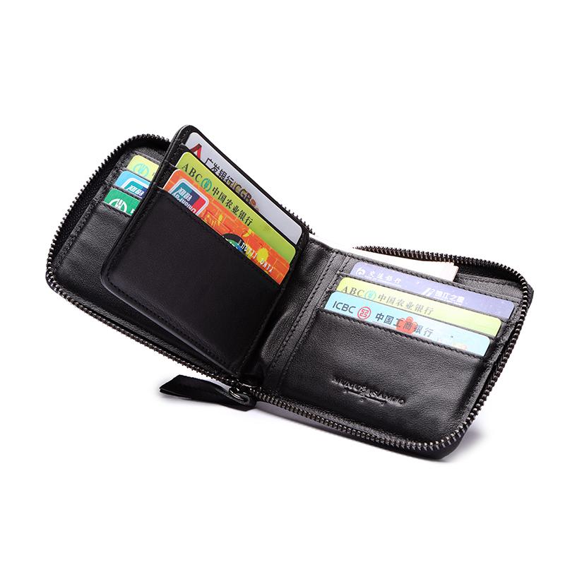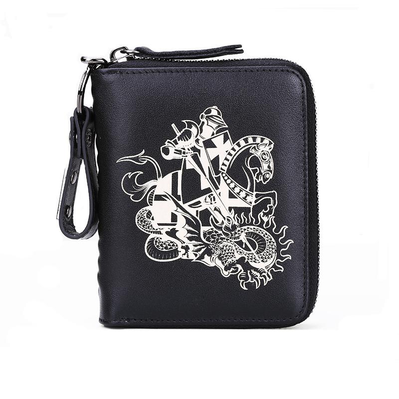 Design: Genuine Leather Mens Chain Biker Wallet Cool Zipper Leather Wallet Bifold billfold Wallets