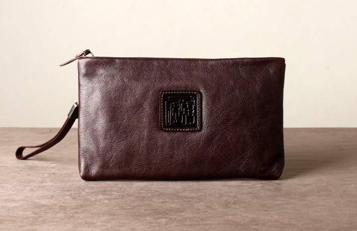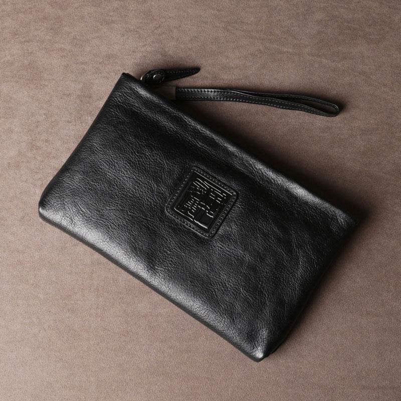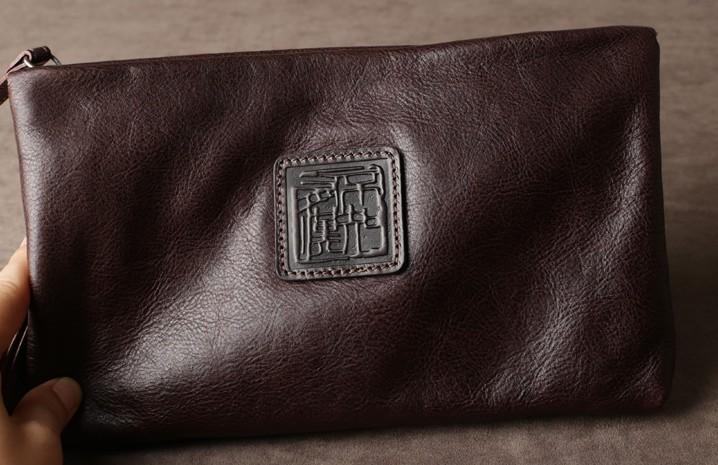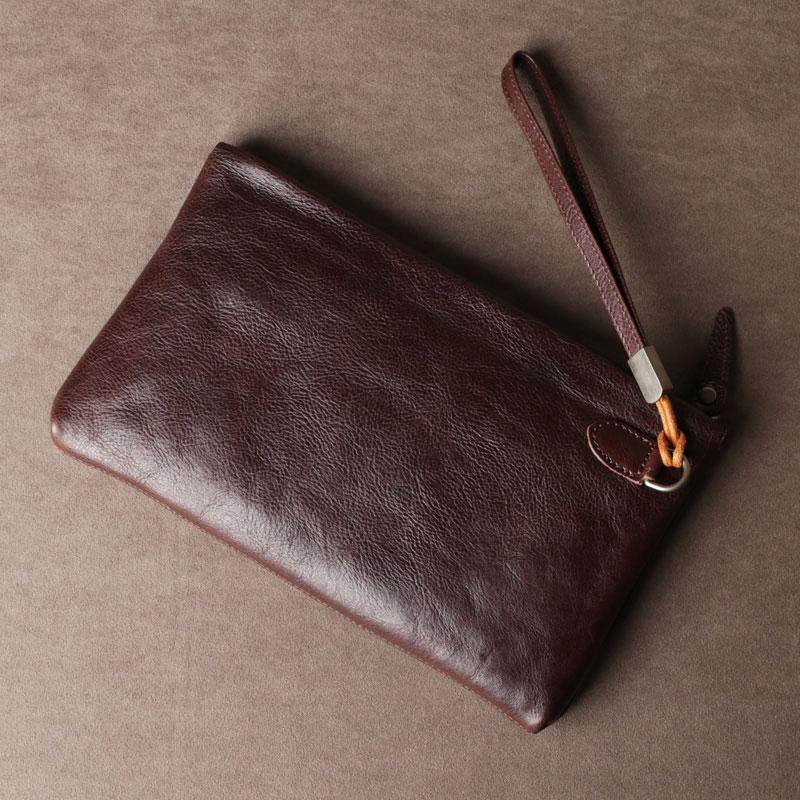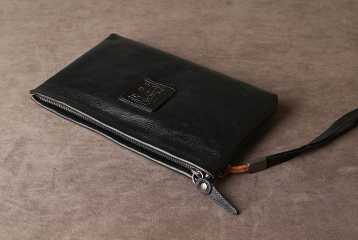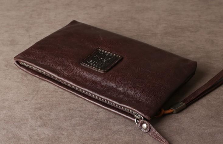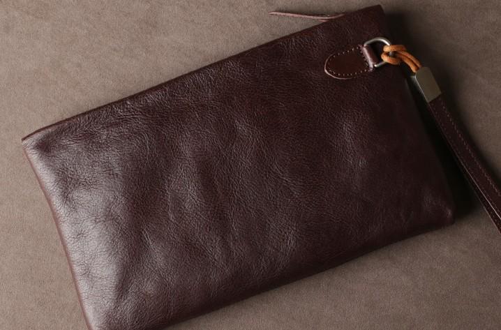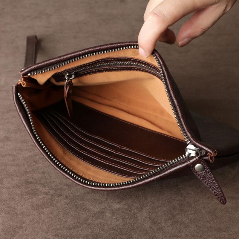 Design: Genuine Leather Mens Clutch Cool Slim Wallet Zipper Clutch Wristlet Bag Wallet for Men Women