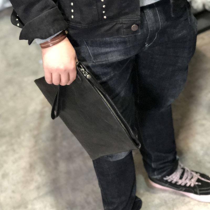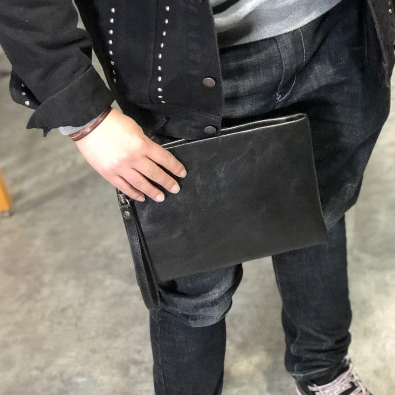 Design: Genuine Leather Mens Clutch Cool Slim Wallet Zipper Clutch Wristlet Wallet for Men