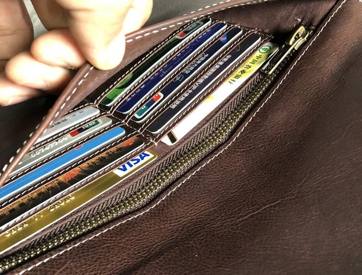 Design: Genuine Leather Mens Clutch Cool Slim Wallet Zipper Clutch Wristlet Wallet for Men