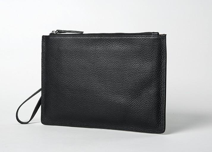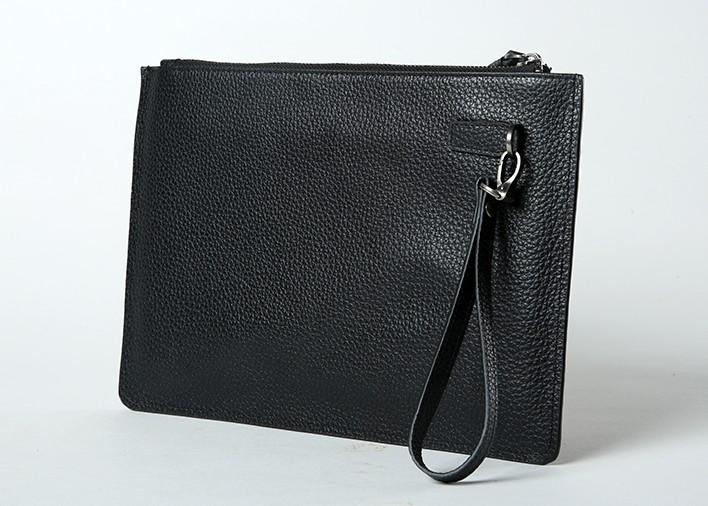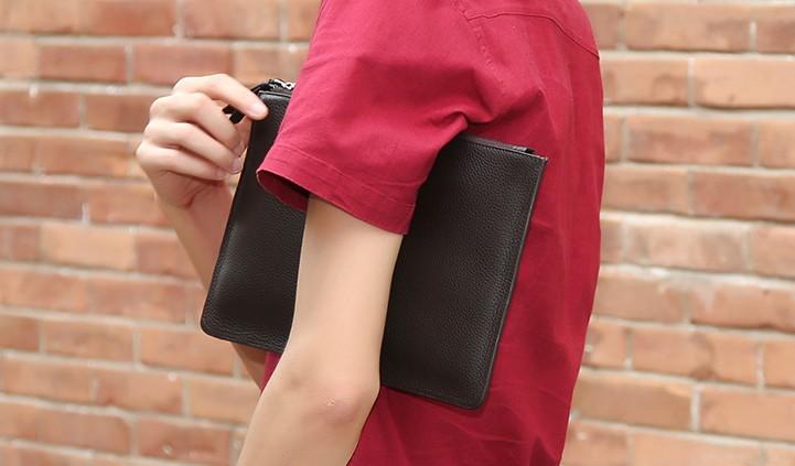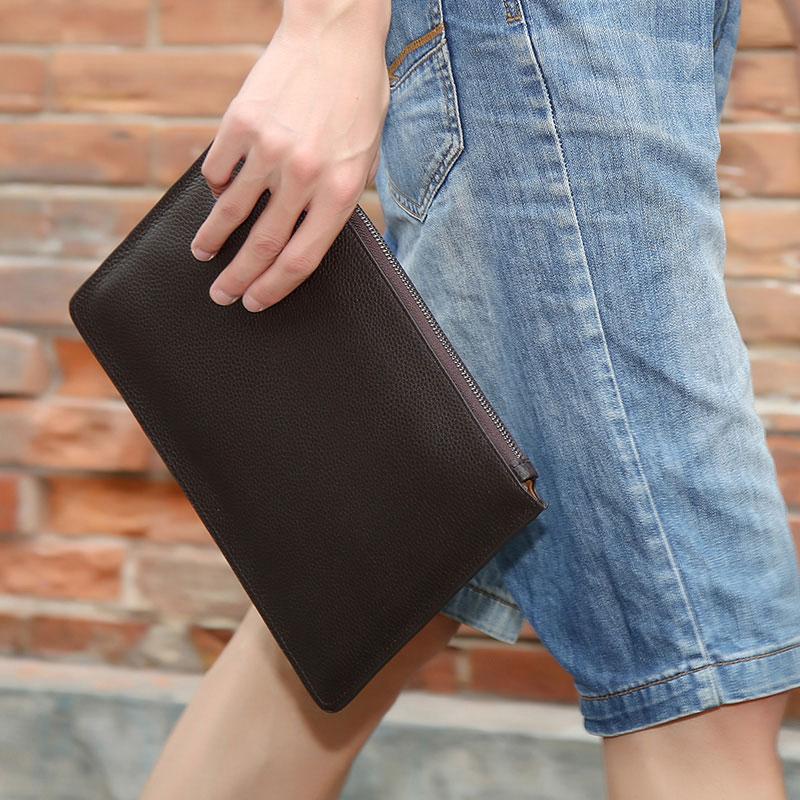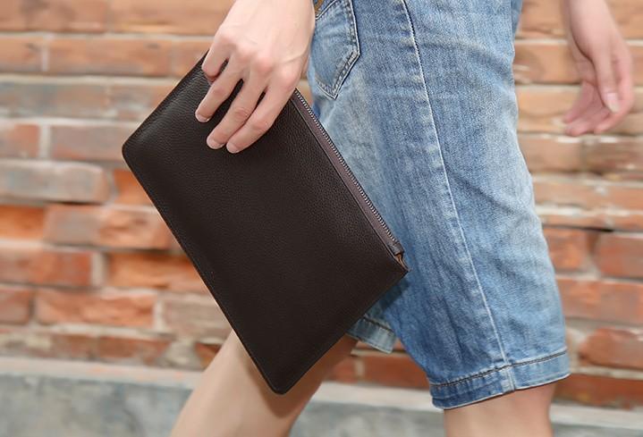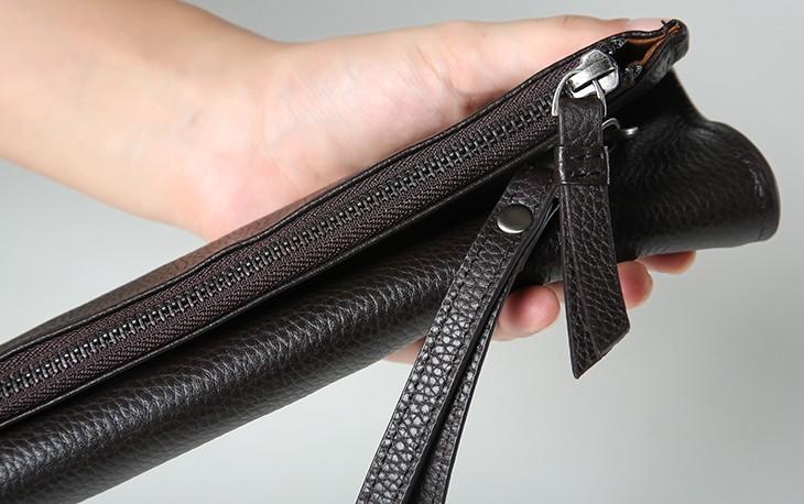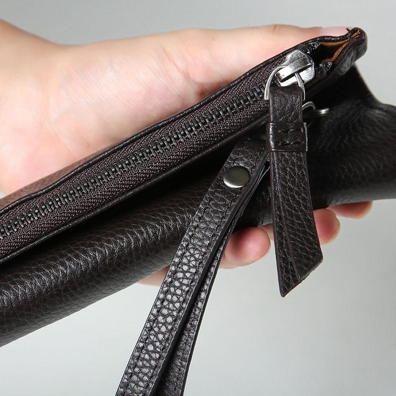 Design: Handmade Leather Mens Clutch Cool Slim Wallet Zipper Clutch Wristlet Bag Wallet for Men